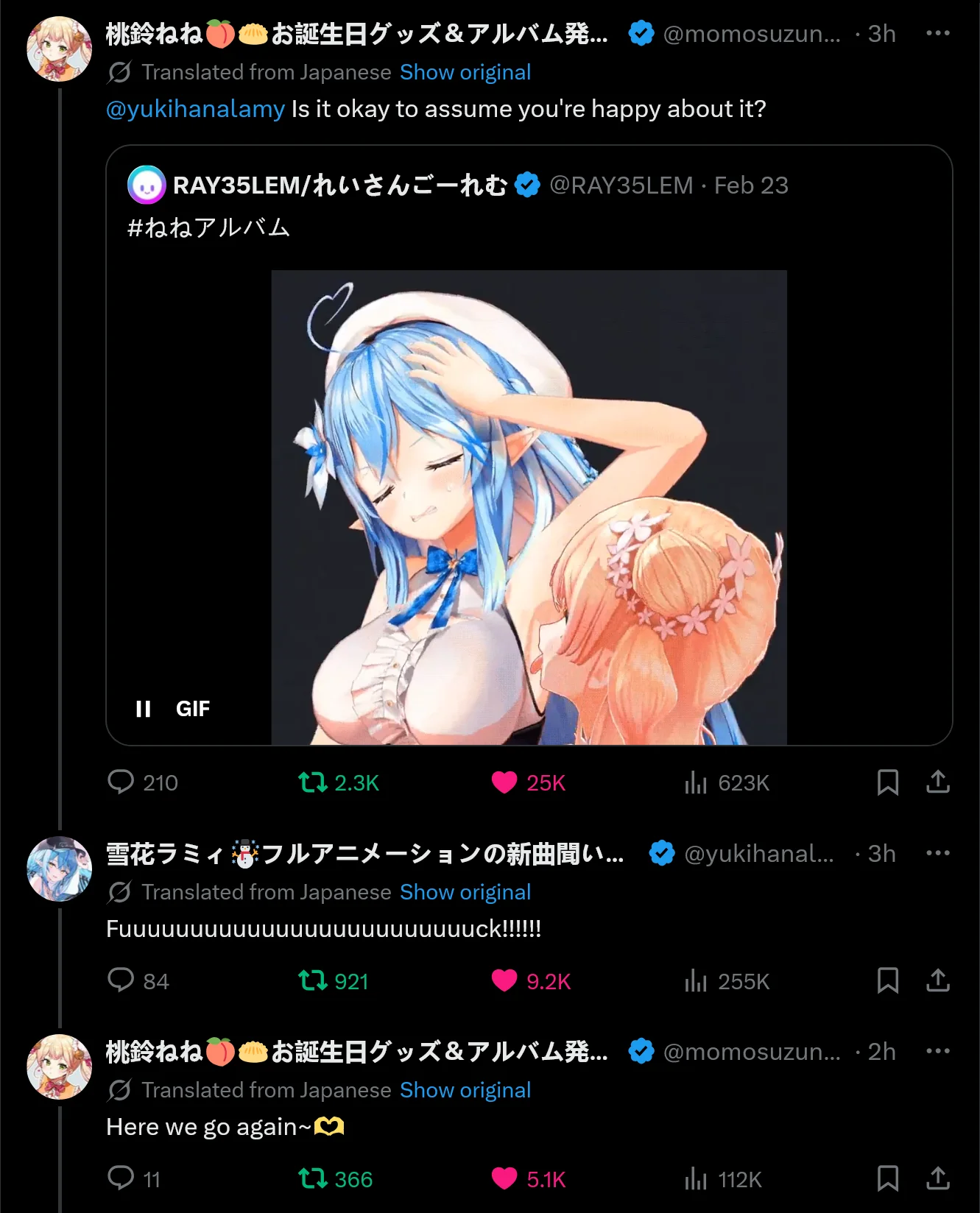 The rightful rulers of Eden and the weather.>YouTube channelshttps://www.youtube.com/@LaplusDarknessshttps://www.youtube.com/@TakaneLuihttps://www.youtube.com/@HakuiKoyorihttps://www.youtube.com/@SakamataChloe (Graduated)https://www.youtube.com/@kazamairohahttps://www.youtube.com/@RukaCh.雨海ルカhttps://www.youtube.com/@HinataCh.天晴ひなた>Twitchhttps://www.twitch.tv/laplusdarknesss_hololiveComment too long. Click here to view the full text.