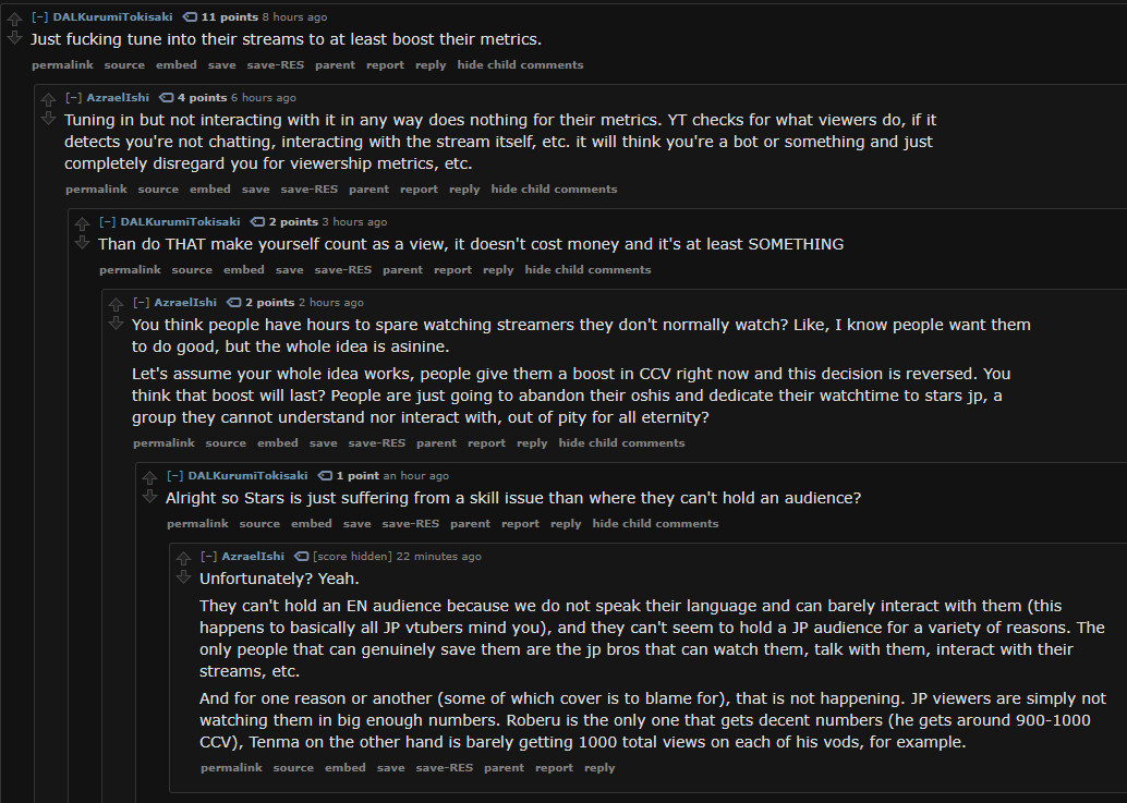 >>110785438>What exactly does she disagree with?She doesn't like how Cover decided on huge budget cuts with zero warning but if anyone talked about setting aside 20% of merch sales from Hololive to fund Holostars even Kiara would likely backtrack. When 95% of fans only want CGDCT content than any attempt at funding Holostars 3D lives/concerts would require subsidization. That would hurt merch sales which is why even Yagoo gave up on that idea. He tried everything under the sun to grow Holostars but after several years there is little audience overlap between Hololive and Holostars. If Yagoo wanted Hololive to be like Nijisanji he would have needed to keep the company small (no giant 3D studios or hundreds of employees working on a Metaverse game).