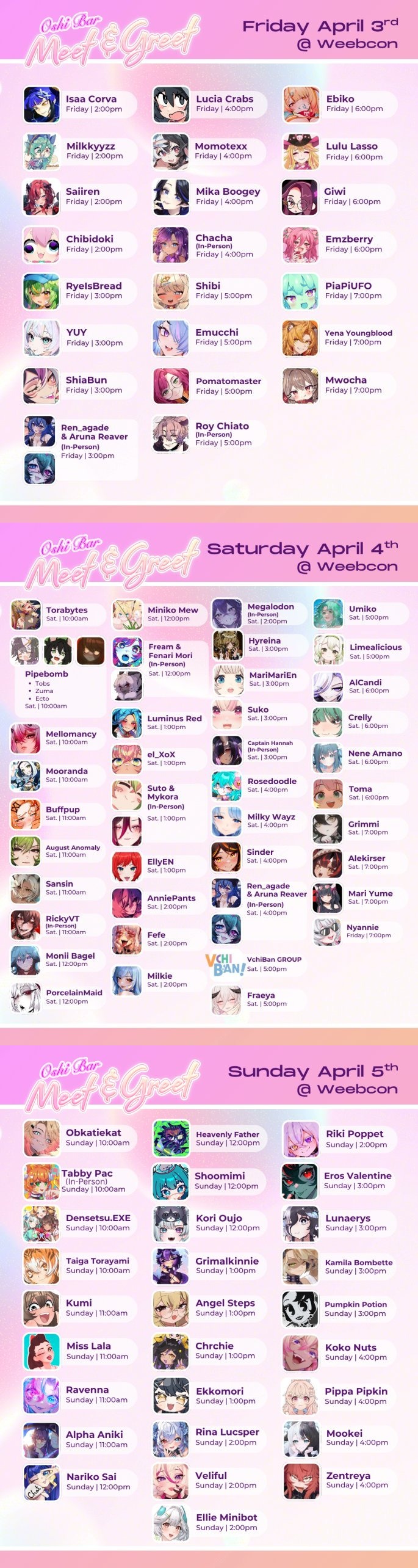>>110798630Yeah there's a bajillion vtuber meet & greets at this con (plus more through other booths - I know Matara did an IRL M&T at the Gamesupps booth)