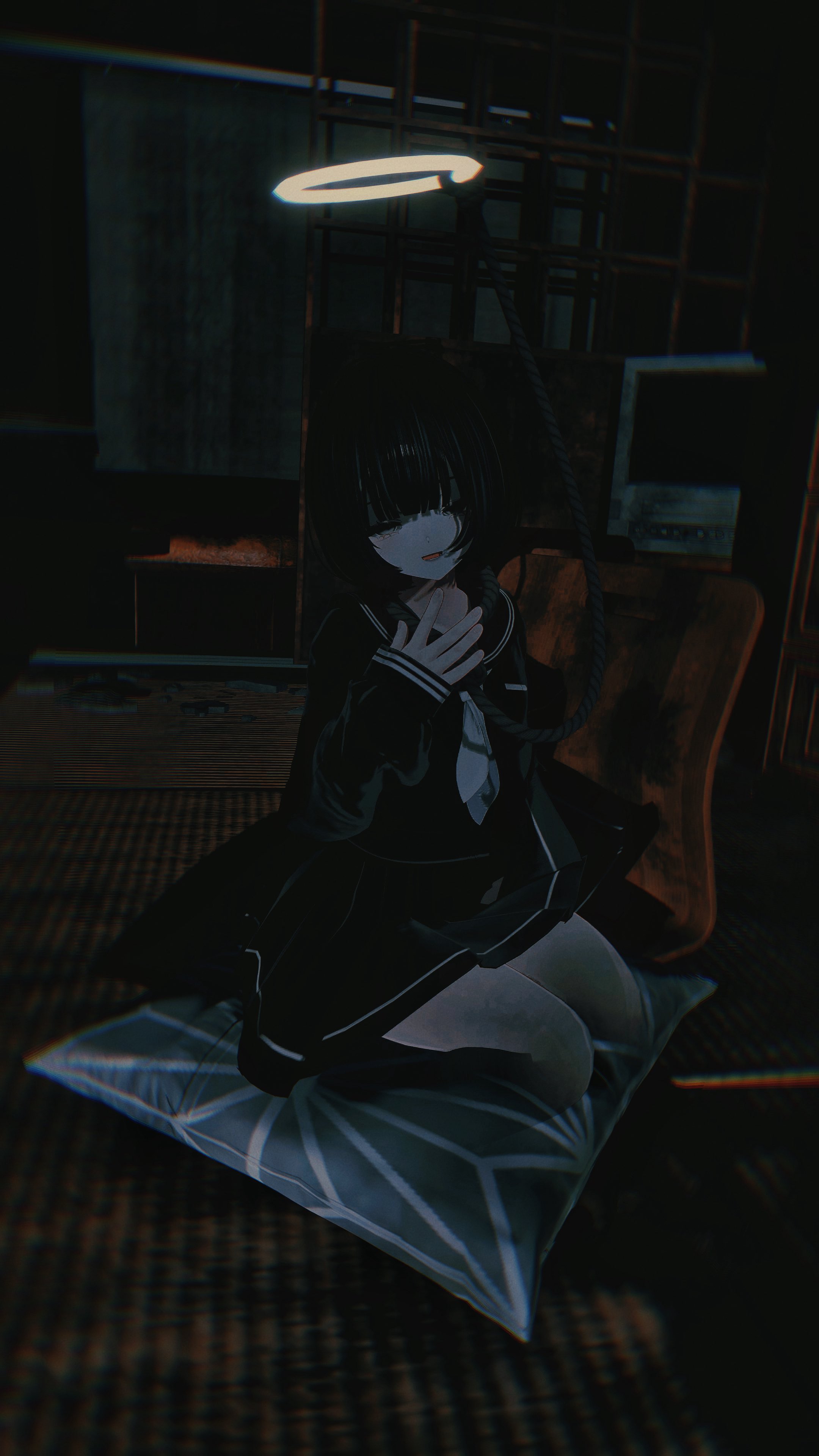 Requesting a damaged Suisei killer robot with a standard or yandere-ish smile while weilding an axe. Also have her clothes partially ripped, showing that she is also wearing very thin lingerie