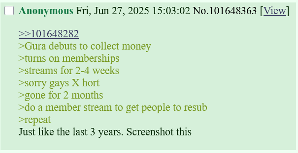 >>110777205It's really not surprising. ERB is basically not Hololive. She literally doesn't stream, and when she does it's on twitch. Doesn't interact with her gen at all. Honestly she's so far removed i don't even wanna complain about it, it's not a earl-Mori situation where you want to say "please care more", it's more like she just doesn't exist.>>110777654He's talking about ERB retard.