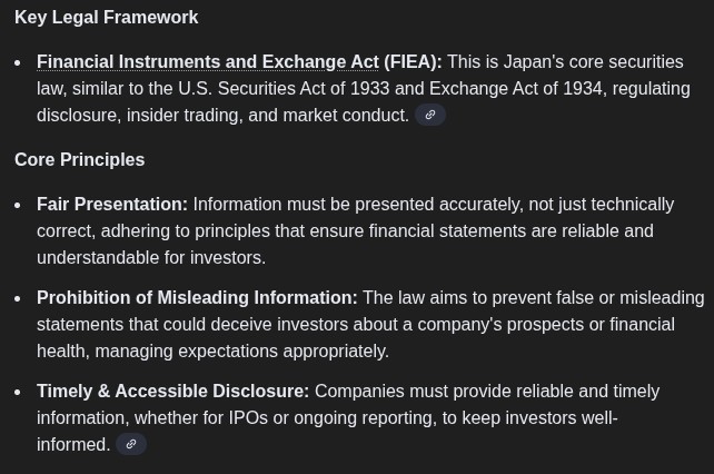 >>108697057>>108698218Yeah doing a quick search merely being technically correct is not sufficient under Japanese law.>Fair Presentation: Information must be presented accurately, not just technically correct, adhering to principles that ensure financial statements are reliable and understandable for investors.