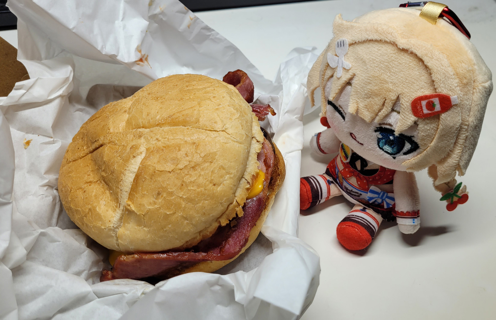 >>108624547Bacon-and-egg burger? Nice