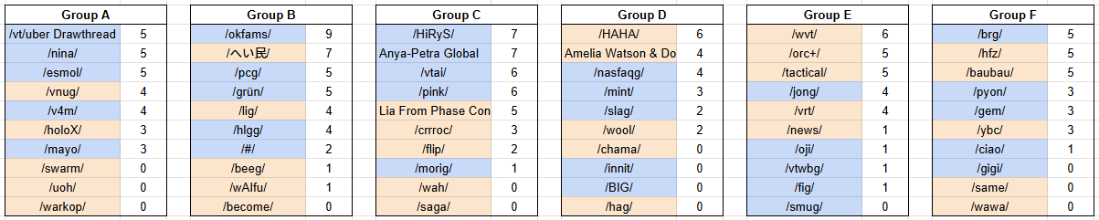 >>108108772Thanks for coming out to Week 1 of Lord of the Board 5!Maybe one day we'll avoid the tender allure of booking an event right next to Christmas.Here are the standings as of the end of Day 2. Keep an eye on /hfz/ for any news updates. If managers have any feedback they'd like to provide, the organizer is happy to receive such messages.Until next week!