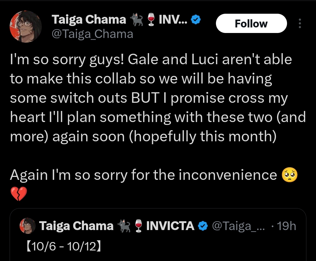 >>105236359I just found out cause i saw that invicta's dude's schedule and saw the boys' names along with some literal whos only to see the boys back out from the collab for some reasons.