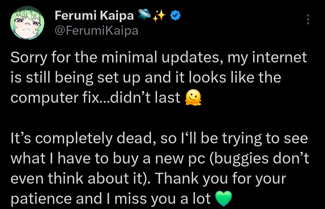 >>105332286>Nothing going wrong with Ferumi>No motivation to stream>Suddenly motivation to stream>Everything goes wrongThis cycle is so tiring