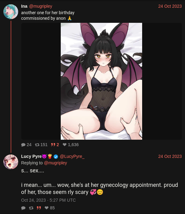 >>105327488>certain vtubers that get pretty much instareportedAnd how would you know that
