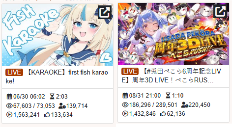>>105387544>Wait why the hell does Saba's have more watch hours? It's barely 10 minutes longer, has significantly less ccv, but has far more watch hours?>Saba's fucking KARAOKE has more views and double the likes compared to the Pekora's 3D live that you're using.Having several times the CCV and half the number of likes is a good sign that all the major vtuber companies are now heavily botting. Hololive is now frequently doing it with the EN branch (especially with Biboo). The Cover bootlicker excuse is that Japanese viewers don't bother with the like button but that is bullshit since the same thing is noticeable with the Biboo streams that were botted.
