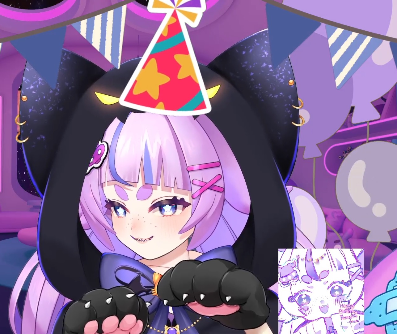 The girlies are back. >Kijo with double birthday hatsCute.
