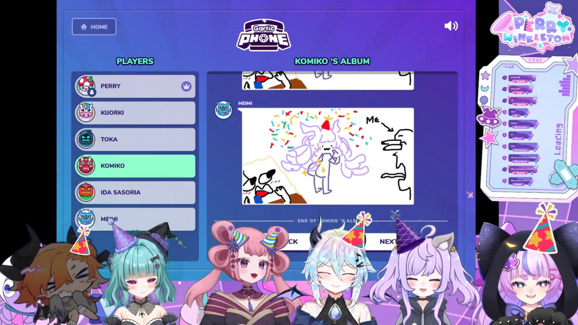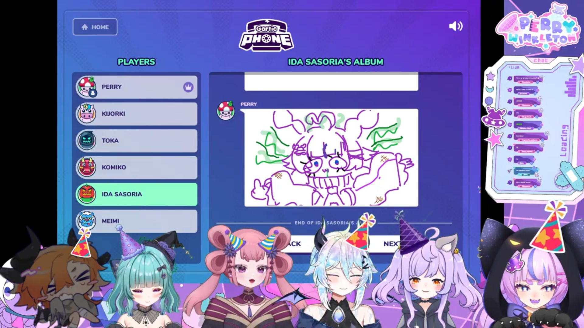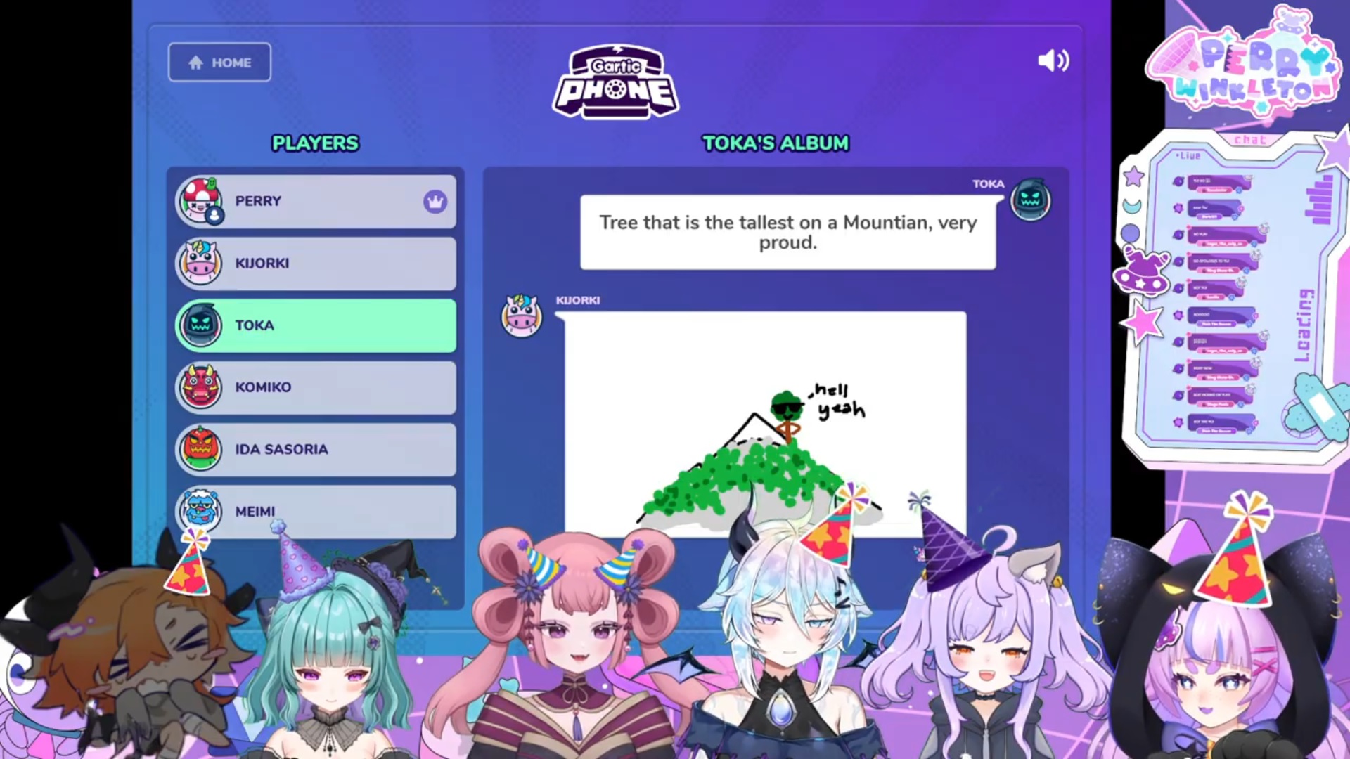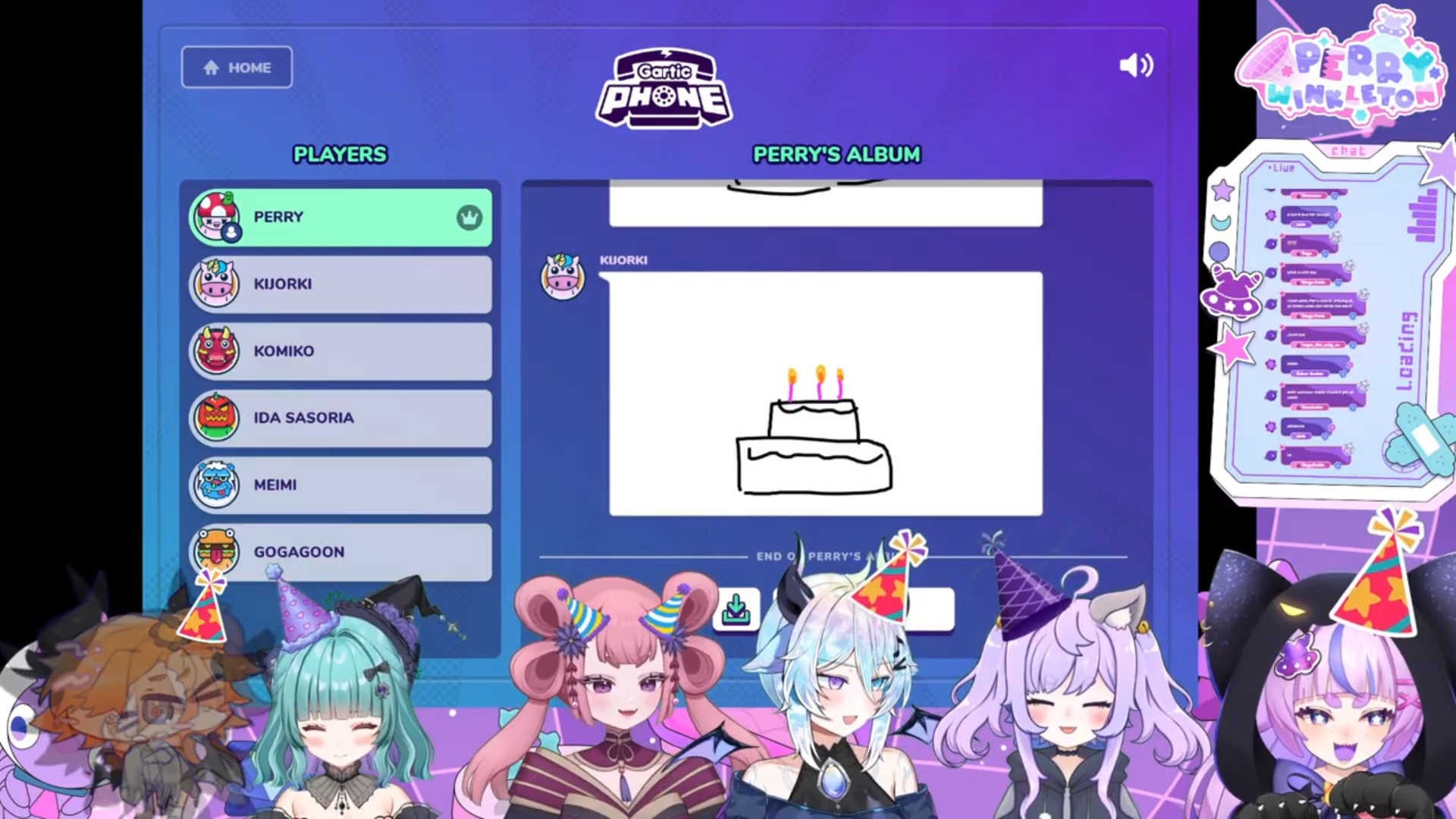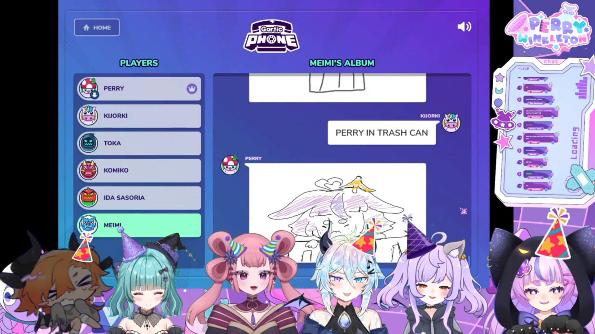 Call-ins are over for now. Perry's setting up for Gartic Phone.