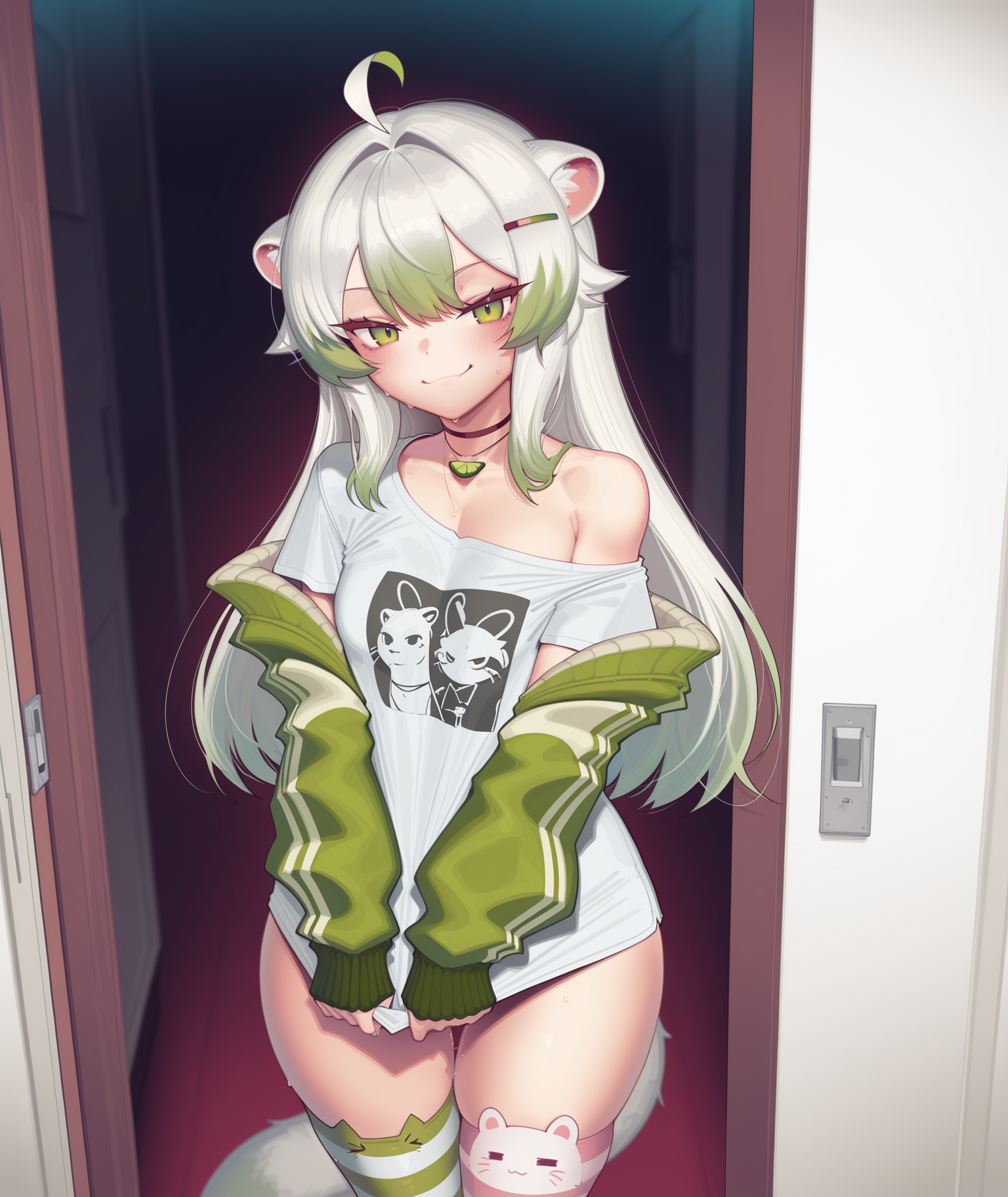 >>105493494I don't have a timestamp or clip it just happens in her irl streams when she forgets she took off her mask or the cameraman forgets to hide her