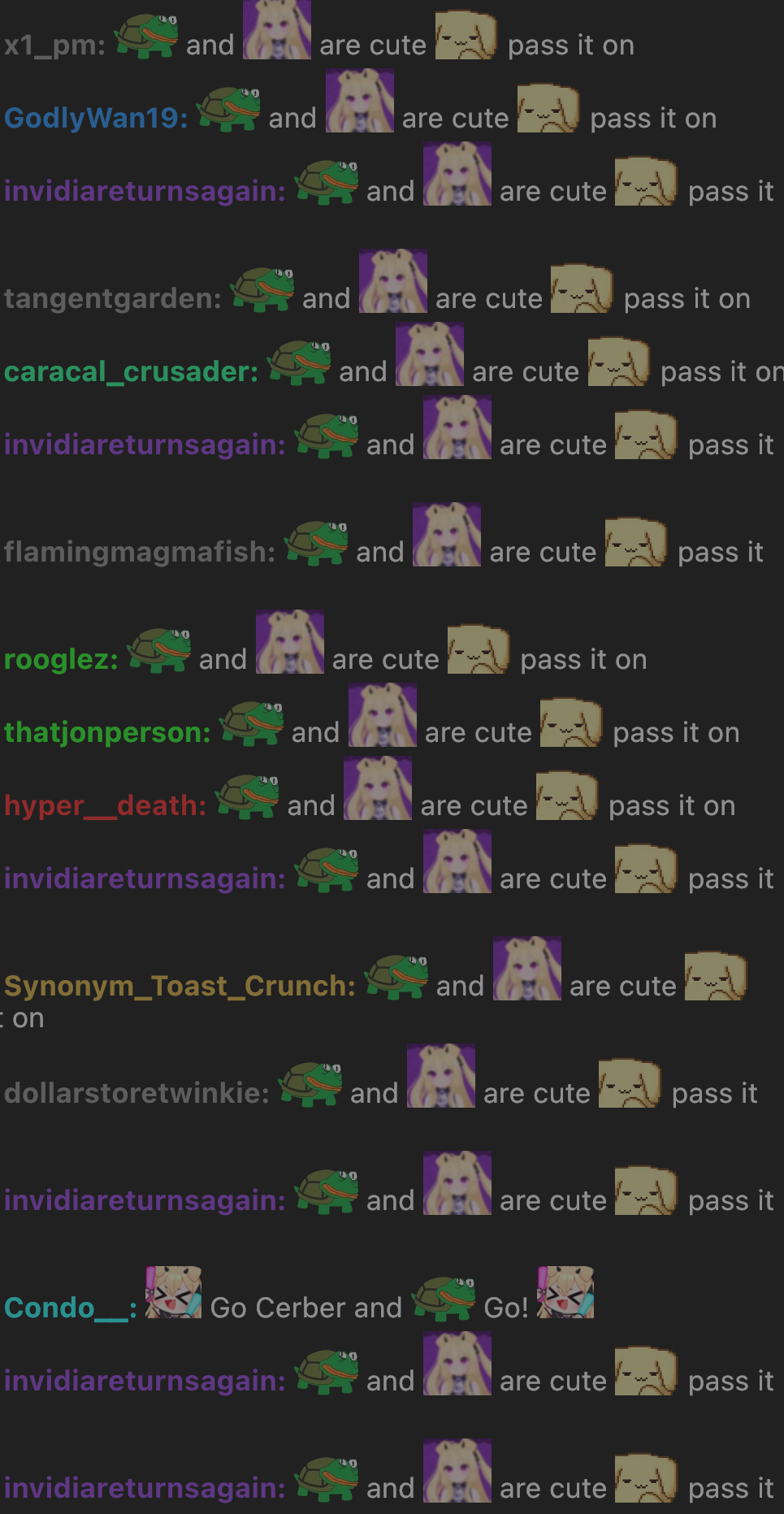 It's cute how Cerber and Mini pass Vedal's viewers around back and forth.