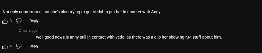 >>105476791Anny's the lewd one out of the group, so of course she'd consider this normal behavior.I do think Anny, at the very least, considered Vedal FWB material at some point but he either rejected her or did something she didn't like.