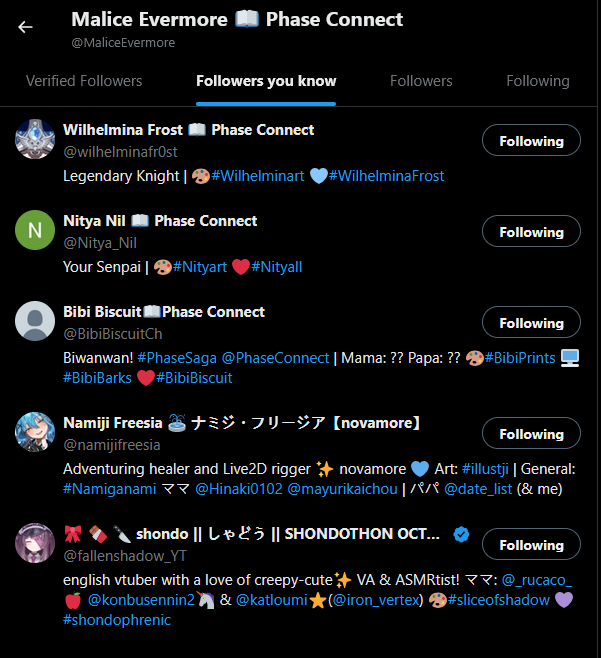 ▼ Phase Connect LinksOfficial Website: https://phase-connect.comOfficial Schedule: https://schedule.phase-connect.comOfficial Twitter: https://x.com/PhaseConnect | https://x.com/PhaseConnectJPOfficial Character References: https://rentry.org/pcgreferencesOfficial Twitch Archive Channels: https://rentry.org/pcgtwitcharchiveUnofficial Phase Connect Archives: https://rentry.org/pcgunofficialarchive––––––––––––––––––––––––––––––––––◆【Lia】https://x.com/rinkouashelia | https://youtube.com/RinkouAshelia | https://twitch.tv/asheliarinkou◆【Utatane Nasa】転寝ナサ (JP) https://x.com/UtataneNasa | https://youtube.com/UtataneNasa | https://twitch.tv/utatanenasa◆【Hakushika Iori】白鹿いおり (JP + EN) https://x.com/hakushikaiori | https://youtube.com/HakushikaIori | https://twitch.tv/iorihakushika◆【Fujikura Uruka】https://x.com/fujikurauruka | https://youtube.com/FujikuraUruka | https://twitch.tv/fujikurauruka◆【Shisui Michiru】紫翠みちる (JP) https://x.com/shisuimichiru | https://youtube.com/ShisuiMichiru | https://twitch.tv/michiru_shisui◆【Tenma Maemi】https://x.com/tenmamaemi | https://youtube.com/TenmaMaemi | https://twitch.tv/tenma◆【Pipkin Pippa】https://x.com/pipkinpippa | https://youtube.com/PipkinPippa | https://twitch.tv/pippa––––––––––––––––––––––––––––––––––◆【Kaneko Lumi】https://x.com/kaneko_lumi | https://youtube.com/KanekoLumi | https://twitch.tv/kanekolumi◆【Fuura Yuri】[Terminated?] https://x.com/AmarisYuri | Archive: https://youtube.com/@TheNationalFuuraYuriArchive◆【Dizzy Dokuro】https://x.com/dizzydokuro | https://youtube.com/@dizzydokuro | https://twitch.tv/dizzydokuro◆【Jelly Hoshiumi】https://x.com/jellyhoshiumi | https://youtube.com/@jellyhoshiumi | https://twitch.tv/jellyhoshiumi◆【Ember Amane】https://x.com/emberamane | https://youtube.com/@EmberAmane | https://twitch.tv/emberamane◆【Clio Aite】https://x.com/ClioAite | https://youtube.com/@ClioAite | https://twitch.tv/clioaite◆【MariMari_en】https://x.com/MARIMARI_EN | https://youtube.com/@MARIMARI_EN | https://twitch.tv/marimari_en◆【Eepy Sleepy】https://x.com/EepySleepyCh | https://www.youtube.com/@EepySleepyCh | https://twitch.tv/EepySleepyCh––––––––––––––––––––––––––––––––––◆【Remilia Nephys】https://x.com/Remilia_Nephys | https://youtube.com/RemiliaNephys | https://twitch.tv/remilianephys◆【Chisaka Airi】https://x.com/ChisakaAiri | https://youtube.com/ChisakaAiri | https://twitch.tv/chisakaairi◆【Amanogawa Shiina】https://x.com/AmanogawaShiina | https://youtube.com/AmanogawaShiina | https://twitch.tv/amanogawashiina◆【Himemiya Rie】https://x.com/HimemiyaRie | https://youtube.com/HimemiyaRie | https://twitch.tv/himemiyarie◆【Erina Makina】https://x.com/ErinaMakina | https://youtube.com/ErinaMakina | https://twitch.tv/erinamakina◆【Komachi Panko】https://x.com/komachipanko | https://youtube.com/KomachiPanko | https://twitch.tv/komachipanko––––––––––––––––––––––––––––––––––◆【Runie Ruse】https://x.com/RunieRuse | https://youtube.com/@RunieRuse | https://twitch.tv/RunieRuse◆【Eimi Isami】https://x.com/eimiisami | https://youtube.com/@eimiisami | https://twitch.tv/eimiisami◆【Muu Muyu】https://x.com/Muu_Muyu | https://youtube.com/@MuuMuyu | https://twitch.tv/MuuMuyu◆【Hikanari Hina】https://x.com/HikanariHina | https://youtube.com/@HikanariHina | https://twitch.tv/HikanariHina◆【Saya Sairroxs】[Hort] https://x.com/sayasairroxs | https://youtube.com/@sayasairroxs | https://twitch.tv/sayasairroxs––––––––––––––––––––––––––––––––––◆【Kannagi Loki】巫ロキ (JP) https://x.com/kannagiloki | https://youtube.com/@kannagiloki◆【Kokoromo Memory】恋衣めもり (JP) https://x.com/kokoromomemory | https://youtube.com/@kokoromomemory_ | https://twitch.tv/kokoromomemory◆【Gram Pico】倉夢ぴこ (JP) https://x.com/grampico_ | https://youtube.com/@grampico | https://twitch.tv/grampico◆【Ayase Yuu】絢世ユウ (JP) https://x.com/ayaseyuuu | https://youtube.com/@ayaseyuu | https://twitch.tv/ayaseyuu_◆【Kaminari Clara】歌美鳴クララ (EN + JP) https://x.com/kaminariclara_ | https://youtube.com/@kaminariclara | https://twitch.tv/kaminariclara––––––––––––––––––––––––––––––––––◆【Bibi Biscuit】https://x.com/BibiBiscuitCh | https://www.youtube.com/@bibibiscuitch | https://www.twitch.tv/bibibiscuitch◆【Sinon Sinfonia】https://x.com/SinonSinfonia | https://www.youtube.com/@SinonSinfonia | https://www.twitch.tv/sinonsinfonia◆【Wilhelmina Frost】https://x.com/wilhelminafr0st | https://www.youtube.com/@wilhelminafrost | https://www.twitch.tv/wilhelminafrost◆【Anya Nyabyss】https://x.com/AnyaNyabyss | https://www.youtube.com/@AnyaNyabyss | https://www.twitch.tv/anyanyabyss◆【Malice Evermore】https://x.com/MaliceEvermore | https://www.youtube.com/@maliceevermore | https://www.twitch.tv/maliceevermore◆【Nitya Nil】https://x.com/Nitya_Nil | https://www.youtube.com/@Nitya_Nil | https://www.twitch.tv/nitya_nilPrevious Thread: >>105474648