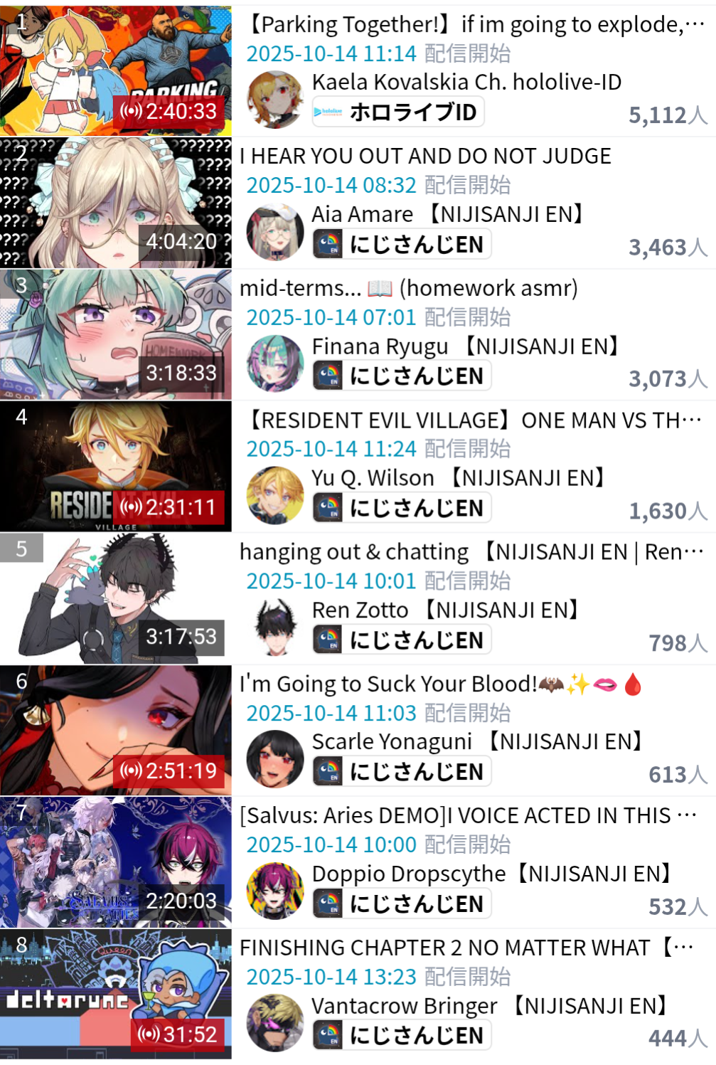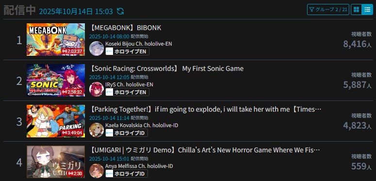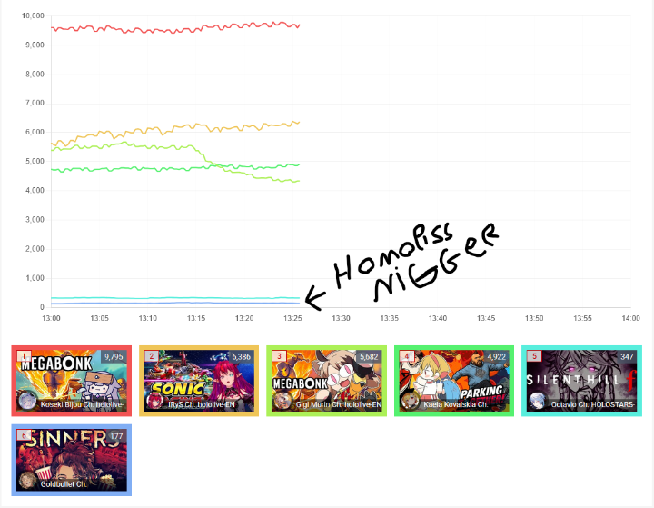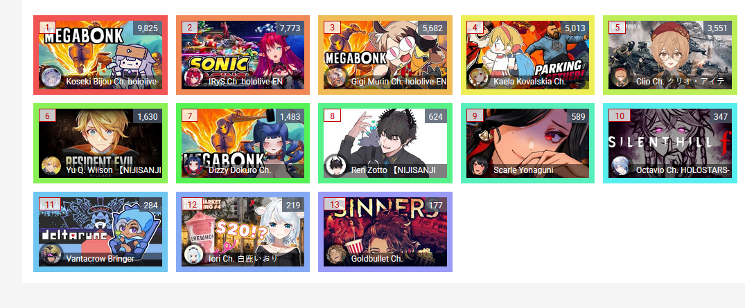 *GENERAL NUMBERFAG SITES*>https://playboard.co/en/>http://ikioi-ranking.com/>https://vrabi.net/>https://www.vstats.jp>https://live-ranking.userlocal.jp/vtuber-ranking>https://vt.poi.cat/Hololive sites>https://www.hololyzer.net/youtube/index.html>https://trackholo.live/en/>https://holo-spotify-stats.jirikunes.eu/Twitch sites>https://sullygnome.com/>https://twitchtracker.com/>https://stats.roki.sh/>https://streamscharts.com/