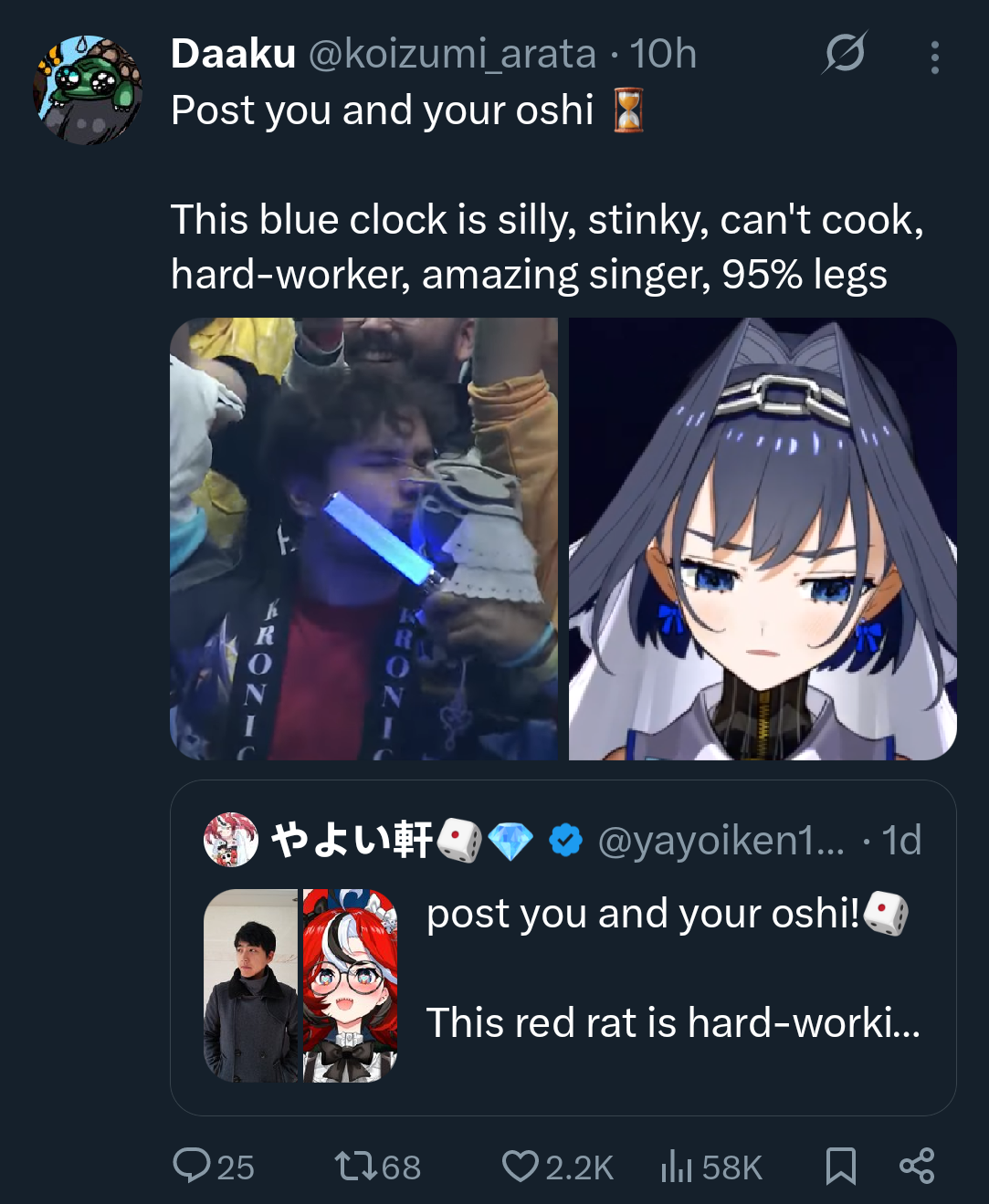 >>105487331>But even in vtubing you can see elements of it, such as ex-corpo chuubas living or dying based on whether they can get into Mint's clique. Or Milky and Phoebe getting bruteforced into "relevance" just because of association with giants.even ex-holos despite having all the freedom in the world have to walk on eggshells to not turn off the holo viewers they have