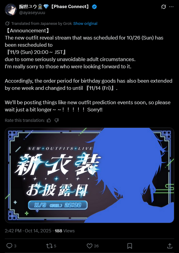 ▼ Phase Connect LinksOfficial Website: https://phase-connect.comOfficial Schedule: https://schedule.phase-connect.comOfficial x: https://x.com/PhaseConnect | https://x.com/PhaseConnectJPOfficial Character References: https://rentry.org/pcgreferencesOfficial Twitch Archive Channels: https://rentry.org/pcgtwitcharchiveUnofficial Phase Connect Archives: https://rentry.org/pcgunofficialarchive––––––––––––––––––––––––––––––––––◆【Lia】https://x.com/rinkouashelia | https://youtube.com/RinkouAshelia | https://twitch.tv/asheliarinkou◆【Utatane Nasa】 転寝ナサ (JP)https://x.com/UtataneNasa | https://youtube.com/UtataneNasa | https://twitch.tv/utatanenasa◆【Hakushika Iori】 白鹿いおり (JP + EN)https://x.com/hakushikaiori | https://youtube.com/HakushikaIori | https://twitch.tv/iorihakushika◆【Fujikura Uruka】https://x.com/fujikurauruka | https://youtube.com/FujikuraUruka | https://twitch.tv/fujikurauruka◆【Shisui Michiru】 紫翠みちる (JP)https://x.com/shisuimichiru | https://youtube.com/ShisuiMichiru | https://twitch.tv/michiru_shisui◆【Tènma Maemi】https://x.com/tenmamaemi | https://youtube.com/TenmaMaemi | https://twitch.tv/tenma◆【Pipkin Pippa】https://x.com/pipkinpippa | https://youtube.com/PipkinPippa | https://twitch.tv/pippa––––––––––––––––––––––––––––––––––◆【Kaneko Lumi】https://x.com/kaneko_lumi | https://youtube.com/KanekoLumi | https://twitch.tv/kanekolumi◆【Fuura Yuri】[Terminated?] Archive: https://x.com/AmarisYuri | https://youtube.com/@TheNationalFuuraYuriArchive◆【Dizzy Dokuro】https://x.com/dizzydokuro | https://youtube.com/@dizzydokuro | https://twitch.tv/dizzydokuro◆【Jelly Hoshiumi】https://x.com/jellyhoshiumi | https://youtube.com/@jellyhoshiumi | https://twitch.tv/jellyhoshiumi◆【Ember Amane】https://x.com/emberamane | https://youtube.com/@EmberAmane | https://twitch.tv/emberamane◆【Clio Aite】https://x.com/ClioAite | https://youtube.com/@ClioAite | https://twitch.tv/clioaite◆【MariMari_en】https://x.com/MARIMARI_EN | https://youtube.com/@MARIMARI_EN | https://twitch.tv/marimari_en◆【Eepy Sleepy】https://x.com/EepySleepyCh | https://www.youtube.com/@EepySleepyCh | https://twitch.tv/EepySleepyCh––––––––––––––––––––––––––––––––––◆【Remilia Nephys】https://x.com/Remilia_Nephys | https://youtube.com/RemiliaNephys | https://twitch.tv/remilianephys◆【Chisaka Airi】https://x.com/ChisakaAiri | https://youtube.com/ChisakaAiri | https://twitch.tv/chisakaairi◆【Amanogawa Shiina】https://x.com/AmanogawaShiina | https://youtube.com/AmanogawaShiina | https://twitch.tv/amanogawashiina◆【Himemiya Rie】https://x.com/HimemiyaRie | https://youtube.com/HimemiyaRie | https://twitch.tv/himemiyarie◆【Erina Makina】https://x.com/ErinaMakina | https://youtube.com/ErinaMakina | https://twitch.tv/erinamakina◆【Komachi Panko】https://x.com/komachipanko | https://youtube.com/KomachiPanko | https://twitch.tv/komachipanko––––––––––––––––––––––––––––––––––◆【Runie Ruse】https://x.com/RunieRuse | https://youtube.com/@RunieRuse | https://twitch.tv/RunieRuse◆【Eimi Isami】https://x.com/eimiisami | https://youtube.com/@eimiisami | https://twitch.tv/eimiisami◆【Muu Muyu】https://x.com/Muu_Muyu | https://youtube.com/@MuuMuyu | https://twitch.tv/MuuMuyu◆【Hikanari Hina】https://x.com/HikanariHina | https://youtube.com/@HikanariHina | https://twitch.tv/HikanariHina◆【Saya Sairroxs】[Hort] https://x.com/sayasairroxs | https://youtube.com/@sayasairroxs | https://twitch.tv/sayasairroxs––––––––––––––––––––––––––––––––––◆【Kannagi Loki】巫ロキ (JP) https://x.com/kannagiloki | https://youtube.com/@kannagiloki◆【Kokoromo Memory】恋衣めもり (JP) https://x.com/kokoromomemory | https://youtube.com/@kokoromomemory_ | https://twitch.tv/kokoromomemory◆【Gram Pico】倉夢ぴこ (JP) https://x.com/grampico_ | https://youtube.com/@grampico | https://twitch.tv/grampico◆【Ayase Yuu】絢世ユウ (JP) https://x.com/ayaseyuuu | https://youtube.com/@ayaseyuu | https://twitch.tv/ayaseyuu_◆【Kaminari Clara】歌美鳴クララ (EN + JP) https://x.com/kaminariclara_ | https://youtube.com/@kaminariclara | https://twitch.tv/kaminariclara––––––––––––––––––––––––––––––––––◆【Bibi Biscuit】https://x.com/BibiBiscuitCh | https://www.youtube.com/@bibibiscuitch | https://www.twitch.tv/bibibiscuitch◆【Sinon Sinfonia】https://x.com/SinonSinfonia | https://www.youtube.com/@SinonSinfonia | https://www.twitch.tv/sinonsinfonia◆【Wilhelmina Frost】https://x.com/wilhelminafr0st | https://www.youtube.com/@wilhelminafrost | https://www.twitch.tv/wilhelminafrost◆【Anya Nyabyss】https://x.com/AnyaNyabyss | https://www.youtube.com/@AnyaNyabyss | https://www.twitch.tv/anyanyabyss◆【Malice Evermore】https://x.com/MaliceEvermore | https://www.youtube.com/@maliceevermore | https://www.twitch.tv/maliceevermore◆【Nitya Nil】https://x.com/Nitya_Nil | https://www.youtube.com/@Nitya_Nil | https://www.twitch.tv/nitya_nilPrevious Thread: >>105486632