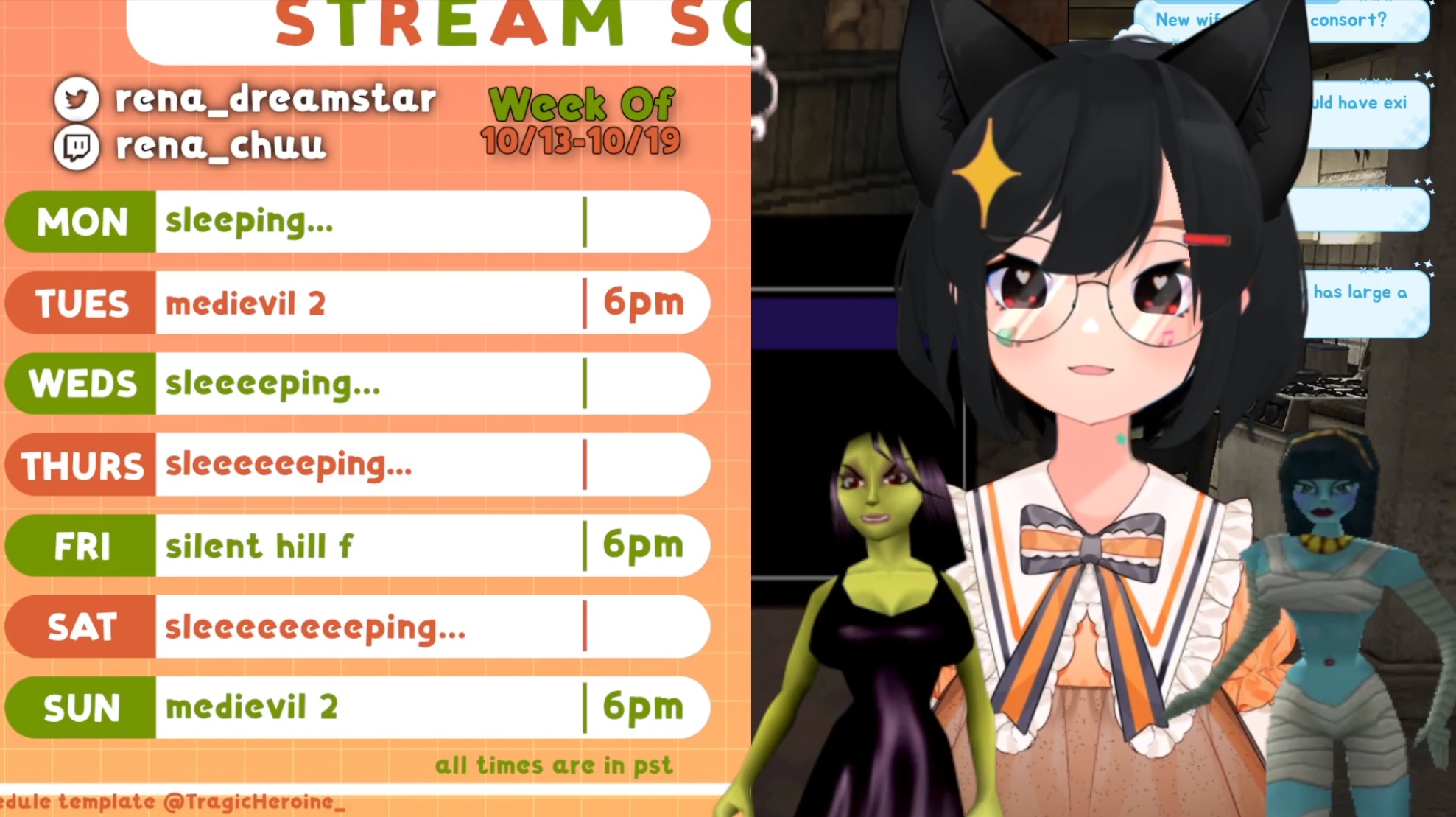 >>105511404Ongoing StreamsMiss Fushi is playing Metroid Fusionhttps://www.twitch.tv/missfushiMiya Galactic is playing Silent Hill 4: The Roomhttps://www.twitch.tv/miyagalacticZuzu Mizuchi is playing Pokemon FireRed Romhack, Infinite Fusionhttps://www.twitch.tv/zuzumizuchiSlump Neko is playing Michael Jackson's Moonwalkerhttps://www.twitch.tv/slumpnekoRena Dreamstar is playing MediEvil 2https://www.twitch.tv/rena_chuuHank Hill is playing NES Punch-Outhttps://www.twitch.tv/thegoodjaredEnatsu Shiroi is playing Fire Emblem: Path of Radiancehttps://www.twitch.tv/enatsushiroiSena Praline is playing Resident Evil Code: Veronicahttps://www.twitch.tv/senapralineFrosty is playing Scooby Doo Night of 100 Frightshttps://www.twitch.tv/frostbytevtKoragi is playing Jak 2https://www.twitch.tv/koragi_chZenya is playing Parasite Evehttps://www.twitch.tv/zenyahima