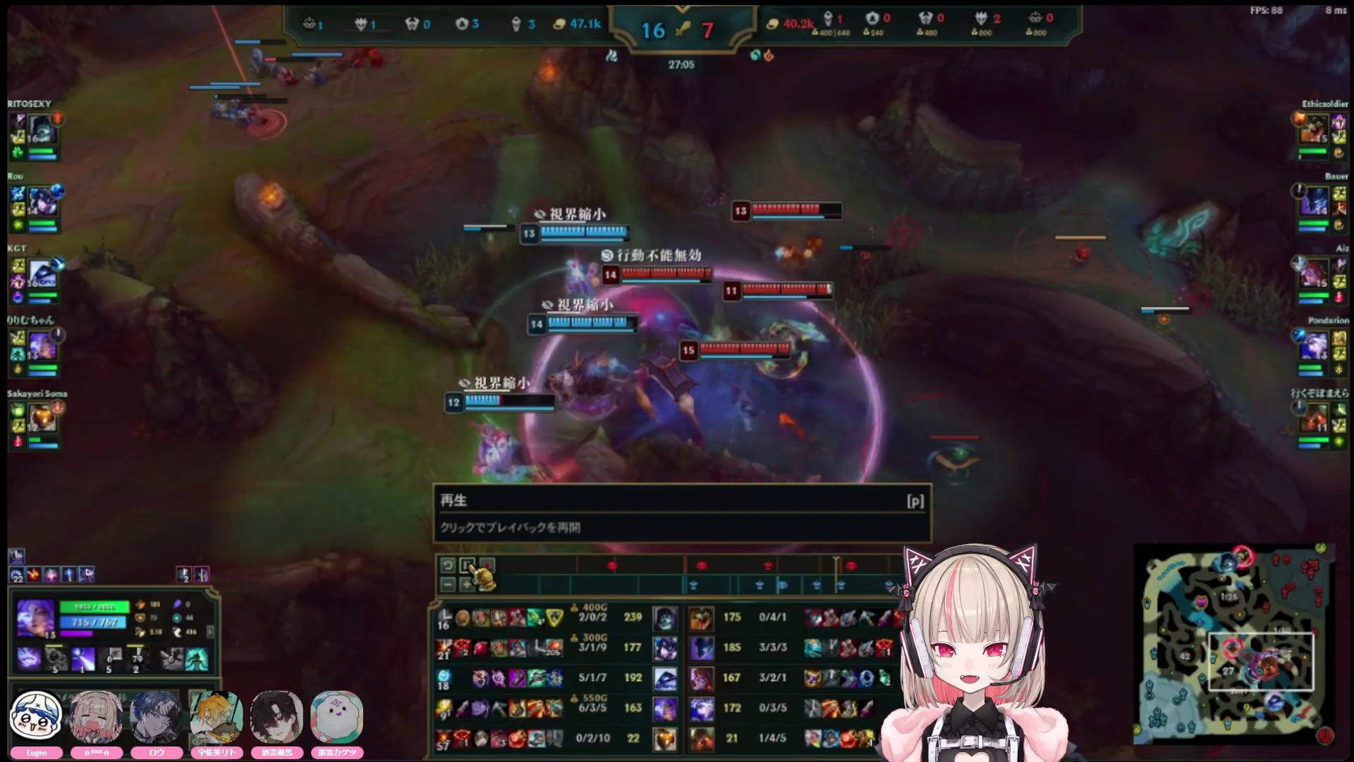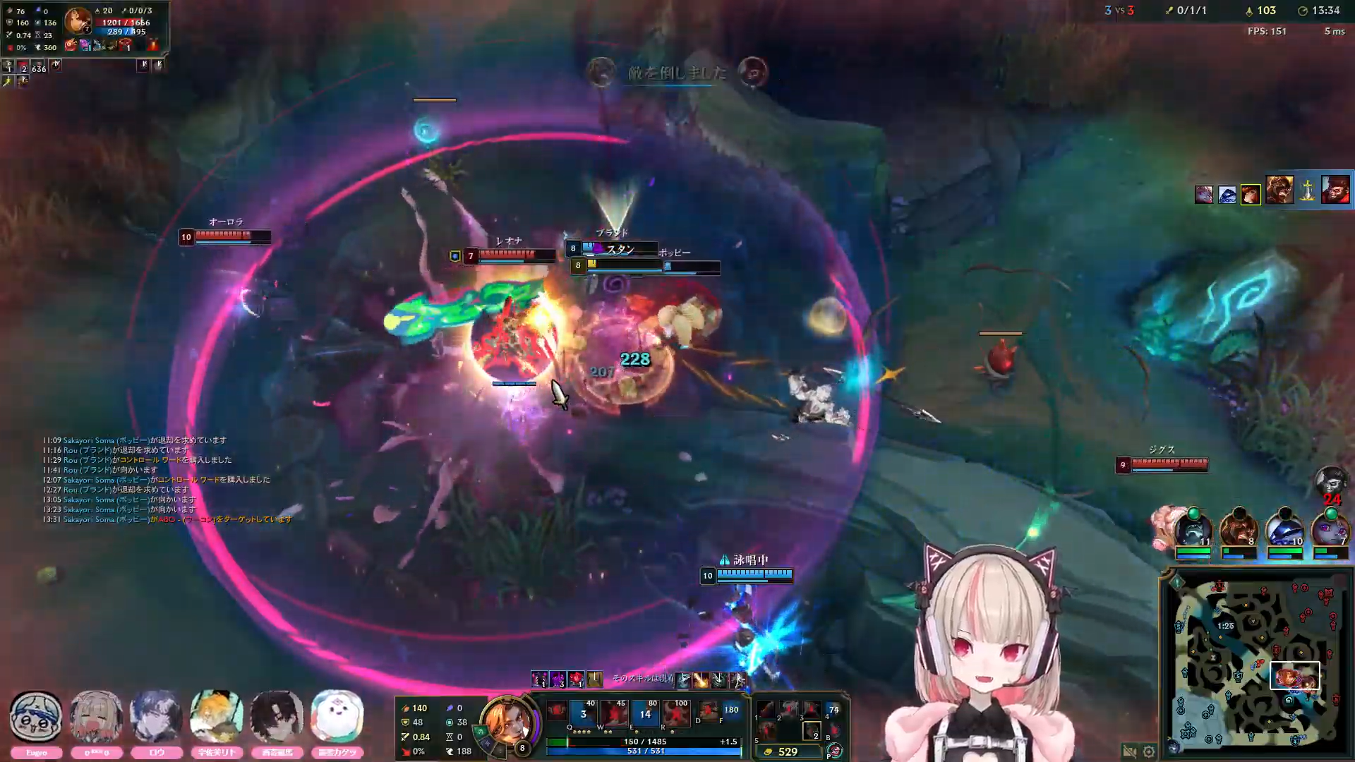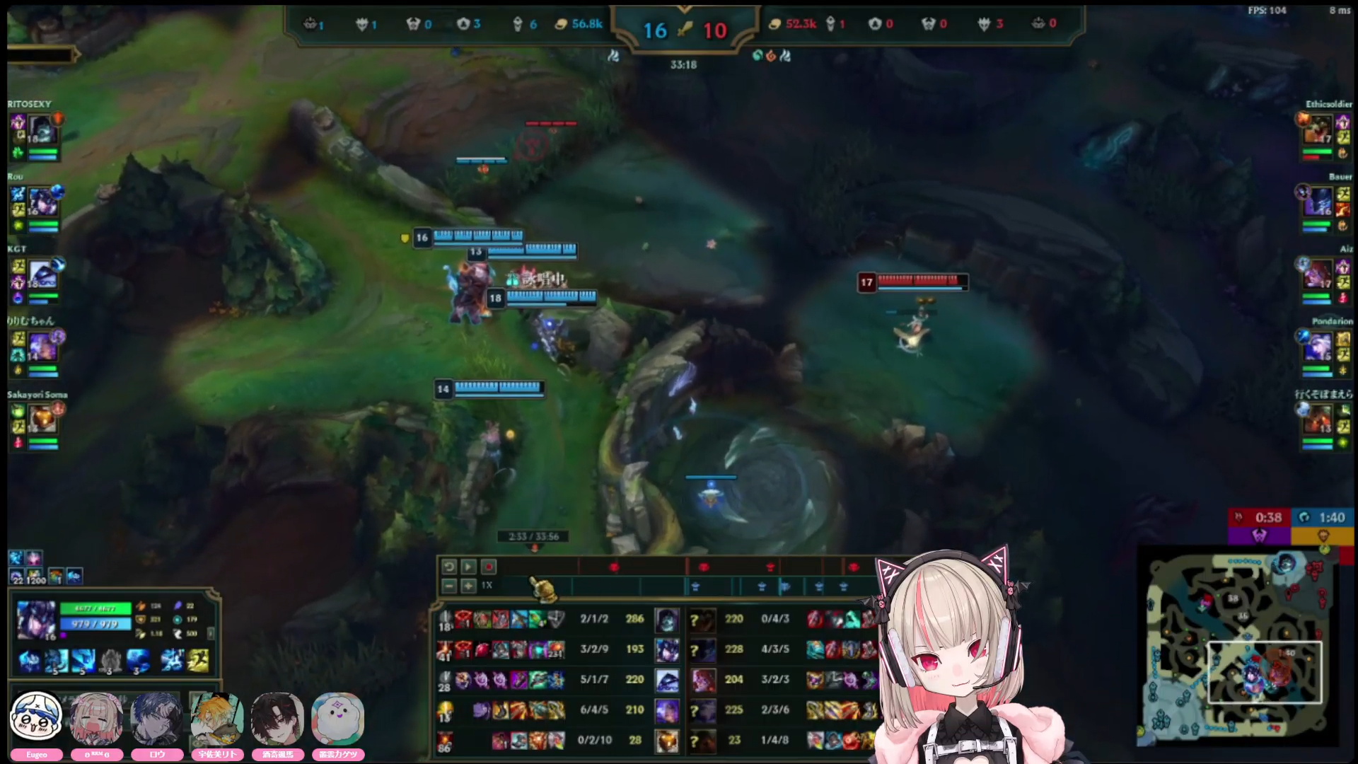 ririmu is getting better at both farming and communicating MIAs to her team! she's getting there, but the thing with ririmu is that hes brain is single-threaded she actually told us various times that she can't focus on multi tasks effectively so learning league takes time, one at a time, also team fight was lost and soma kept calling to focus on aurora but ririmu doesn't know who aurora is so she didn't know who to focus...so she hit leona instead