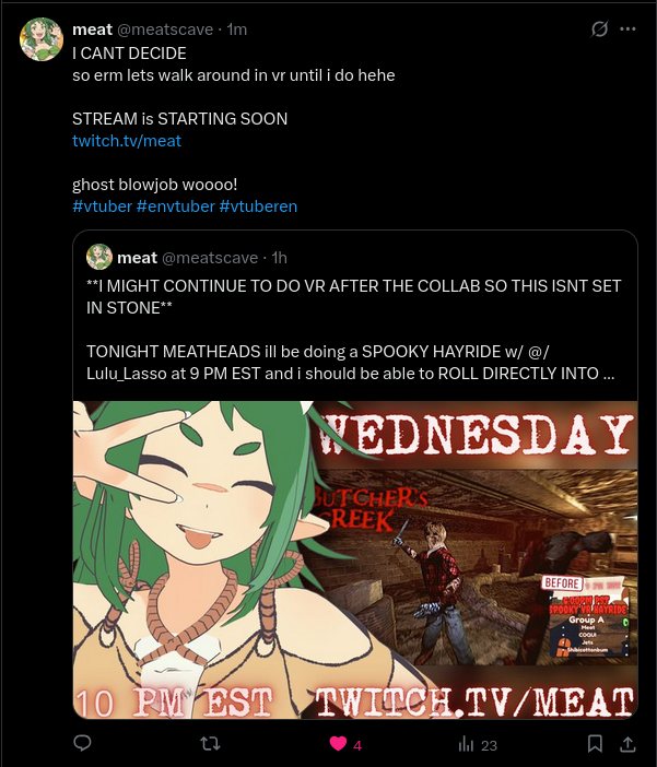 sinuu live, no metro exodus though til her new pc gets in so another horror sloppa night i think