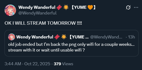 Wanderers? It's happening!https://x.com/WendyWanderful/status/1980812439072698606