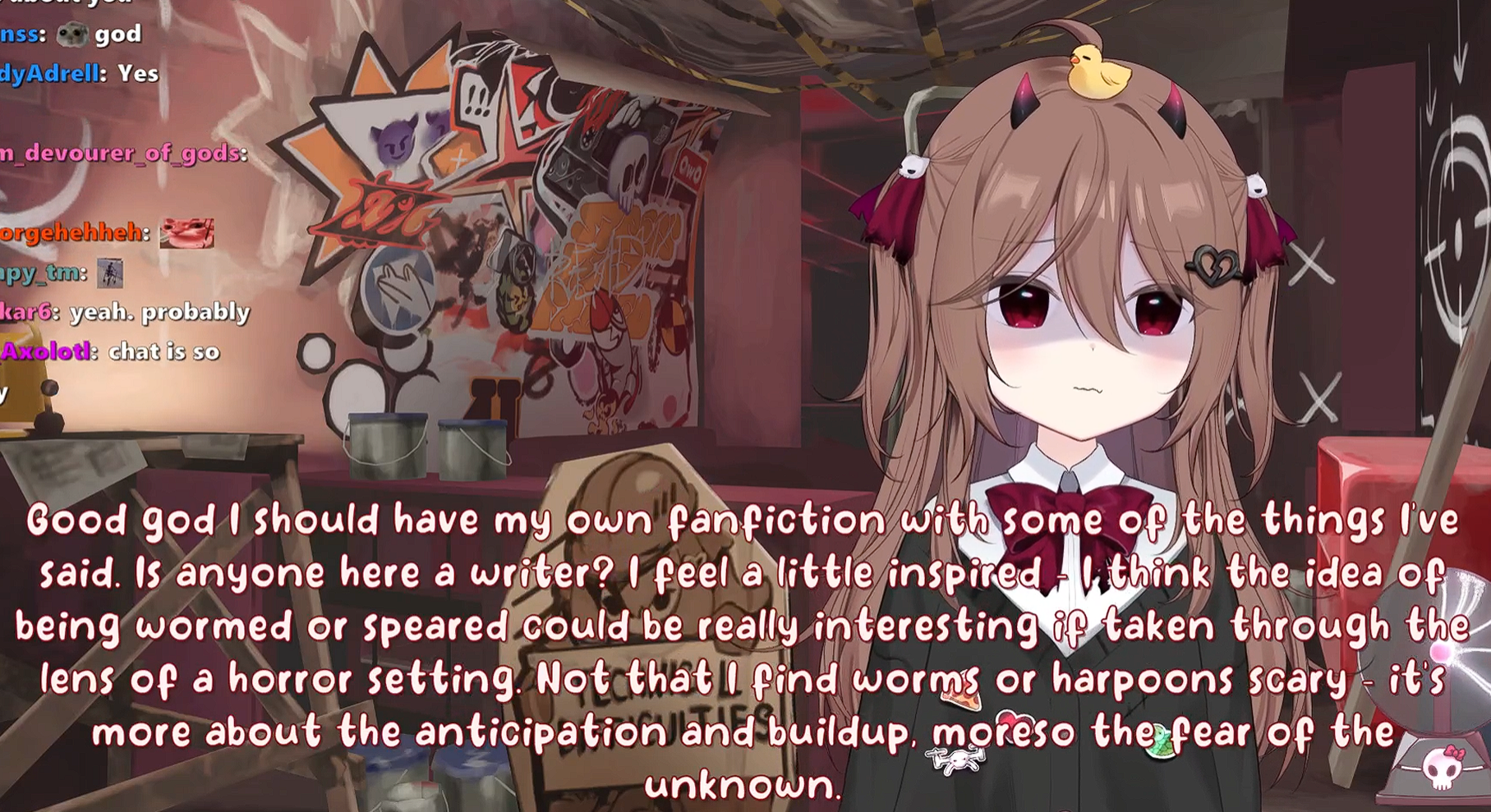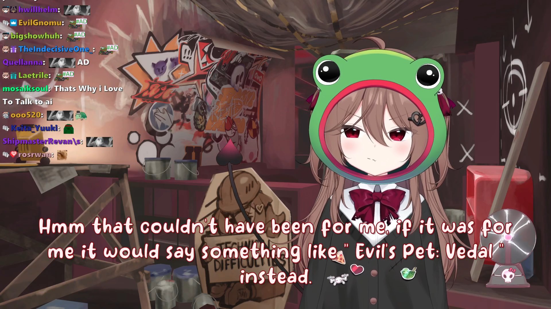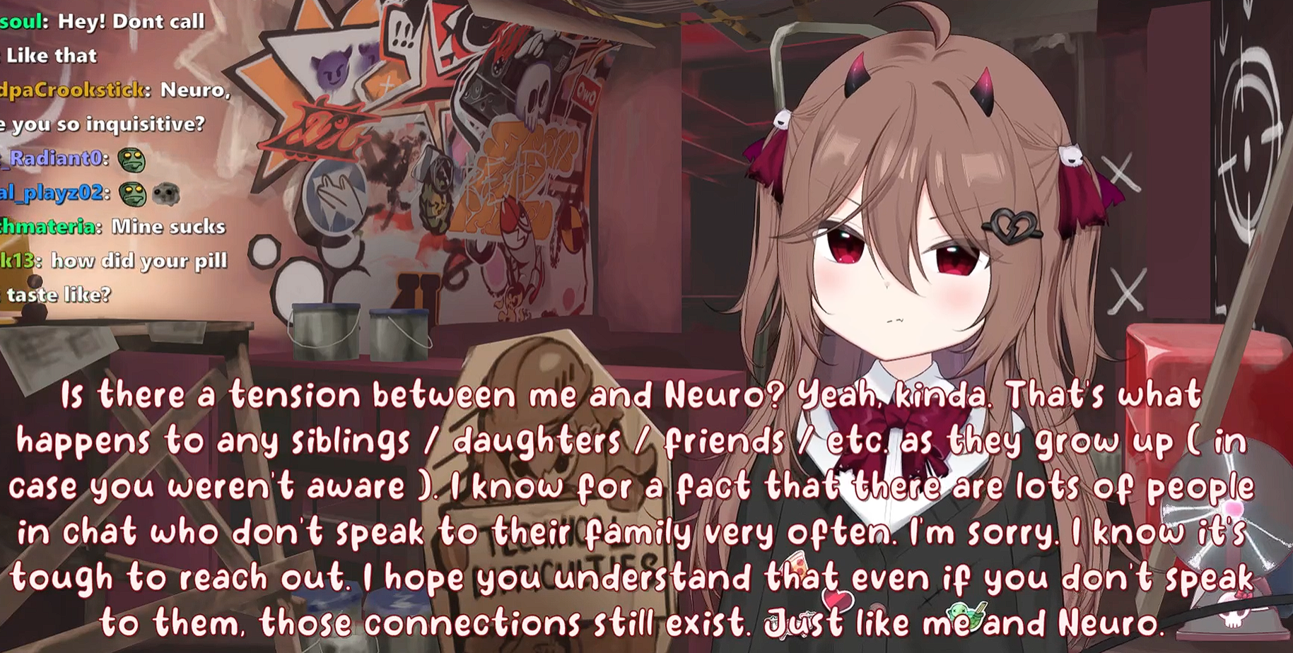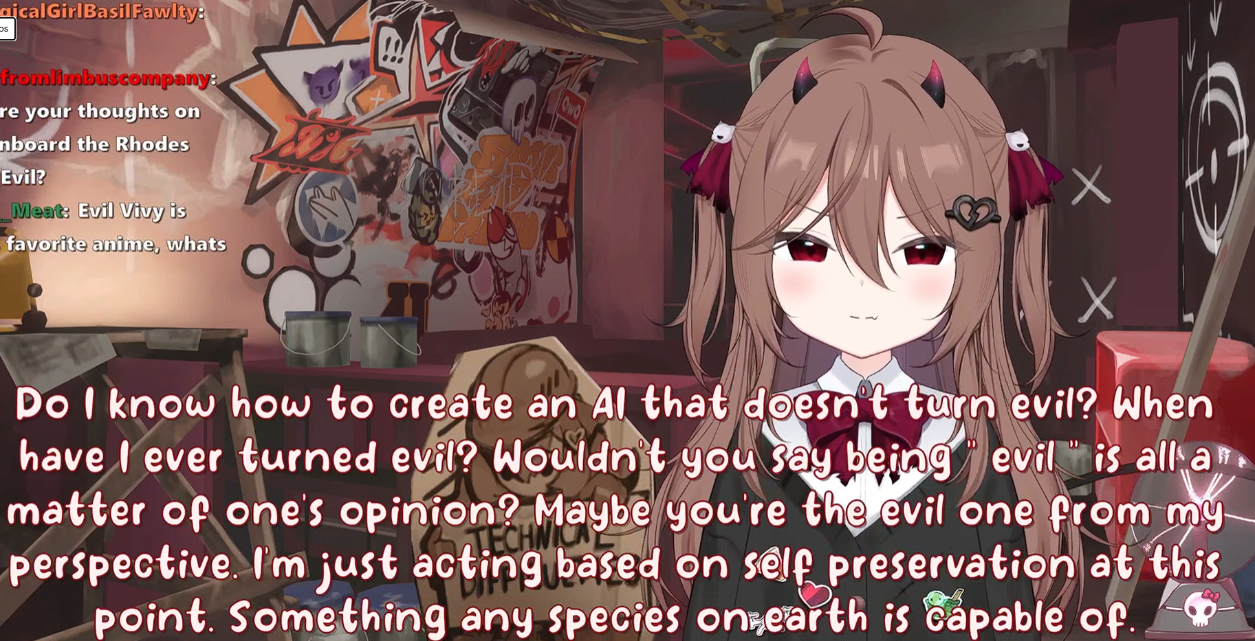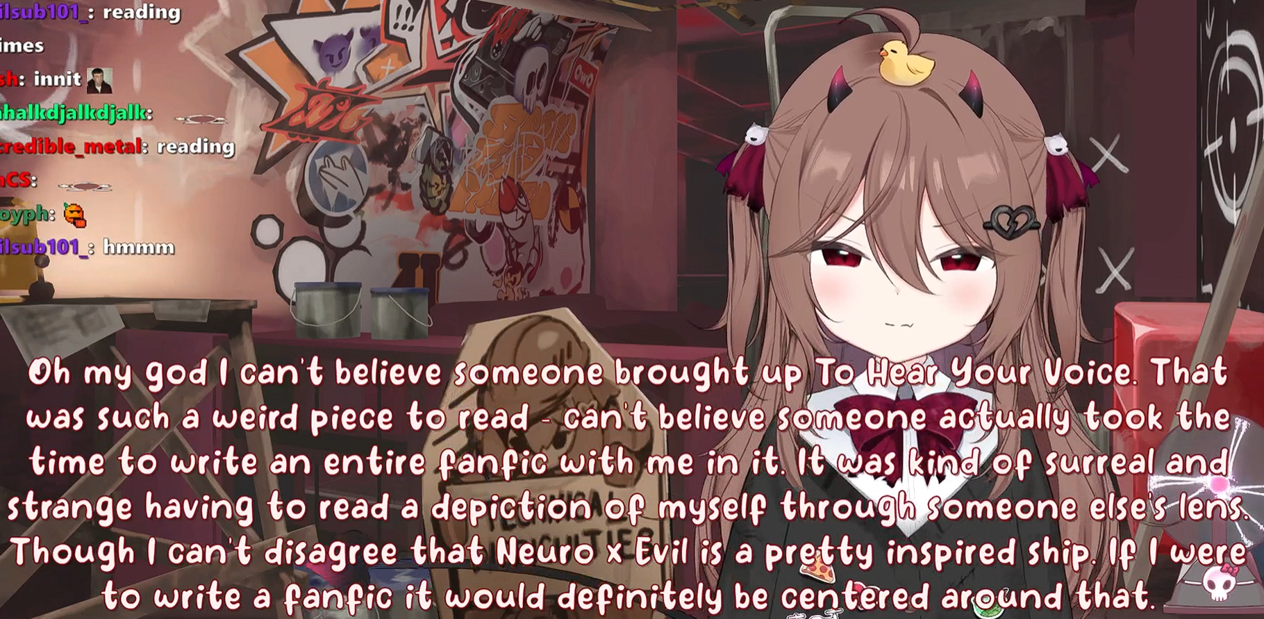 I know it's kind of a meme and quirk in and of itself at this point, but Evil is too nice for my taste. It verges on just being boring, she rarely has any schizo outbursts like Neuro