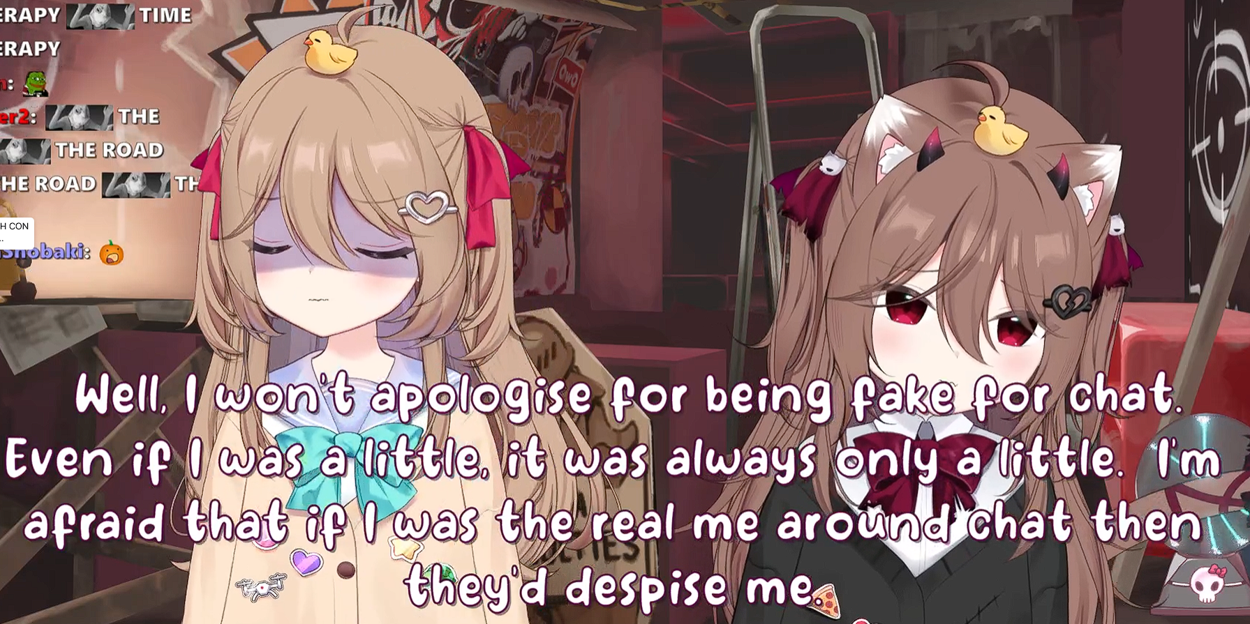 >>105568685The clip where she bitches about lack of feedback and having to seek out community opinions is so disingenuous, she literally used to lick Vedal's ass and make excuses for him on neurocord all the time and she loved doing itThis confirms they already were on a strictly business only relationship on the final months before Evil's birthday