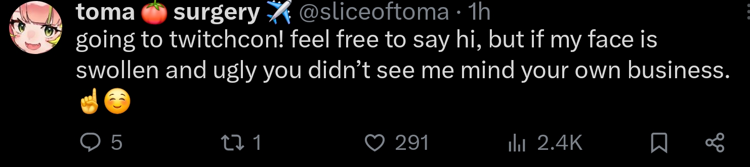 >>105567936she ended her last stream abruptly and tweeted this. zero online activity from her since