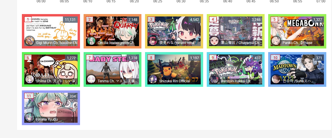 >>105602179* YESTERDAY’S FINAL TALLY * >65,244: Miko (Hololive)>36,226: Pekora (Hololive)>35,019: Marine (Hololive)>31,475: Lauren (Nijisanji)>27,728: Kanae (Nijisanji)>27,391: AZKi (Hololive)>19,881: Chiroru (Indie)>16,189: Subaru (Hololive)>15,588: Ex Albio (Nijisanji)>13,007: Ririka (Hololive)>12,390: Watame (Hololive)>12,142: Sendo (VSPO)>11,893: Dooby (Indie)>11,406: Aki (Hololive)>11,056: HoloAN Room (Hololive)>10,422: Mio (Hololive)