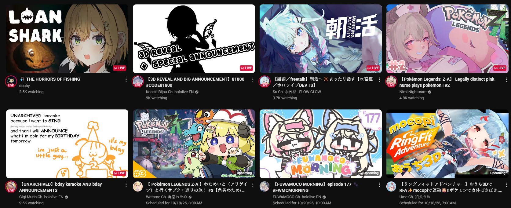 >>105602564OCT 2025 HIGHLANDER>1) 92,847: Korone (hololive) birthday collab stream>2) 68,374: Suisei (hololive) Important Announcement + new miComet outfit reveals>3) 69,410: Miko (hololive) FubuMio vs miComet clubhouse 51>4) 49,718: Subaru (hololive) Naruto Shippuden: Ultimate Ninja Storm 4 finale [S]>5) 105,025: Fubuki (hololive) 3DLIVE Birthday>6) 40,093: Marine (hololive) Hololive Koushien 2025 AHOY Academy Year 3>7) 34,747: Pekora (hololive) Marika DX8>8) 42,460: Kuzuha (Nijisanji)>9) 32,991: Gwelu (Nijisanji)>10) 55,693: Luna (Hololive)>11) 33,464: Kanae (Nijisanji)>12) 29,548: Lauren (Nijisanji)>13) 31,950: Iroha (Hololive)>14) 23,356: Patra (Indie)>15) 20,049: Chiroru (Indie)>16) 18,965: AZKi (Hololive) >17) 15,588: Ex Albio (Nijisanji)> PER COMPANY10x: Hololive5x: Nijisanji 2x: Indie