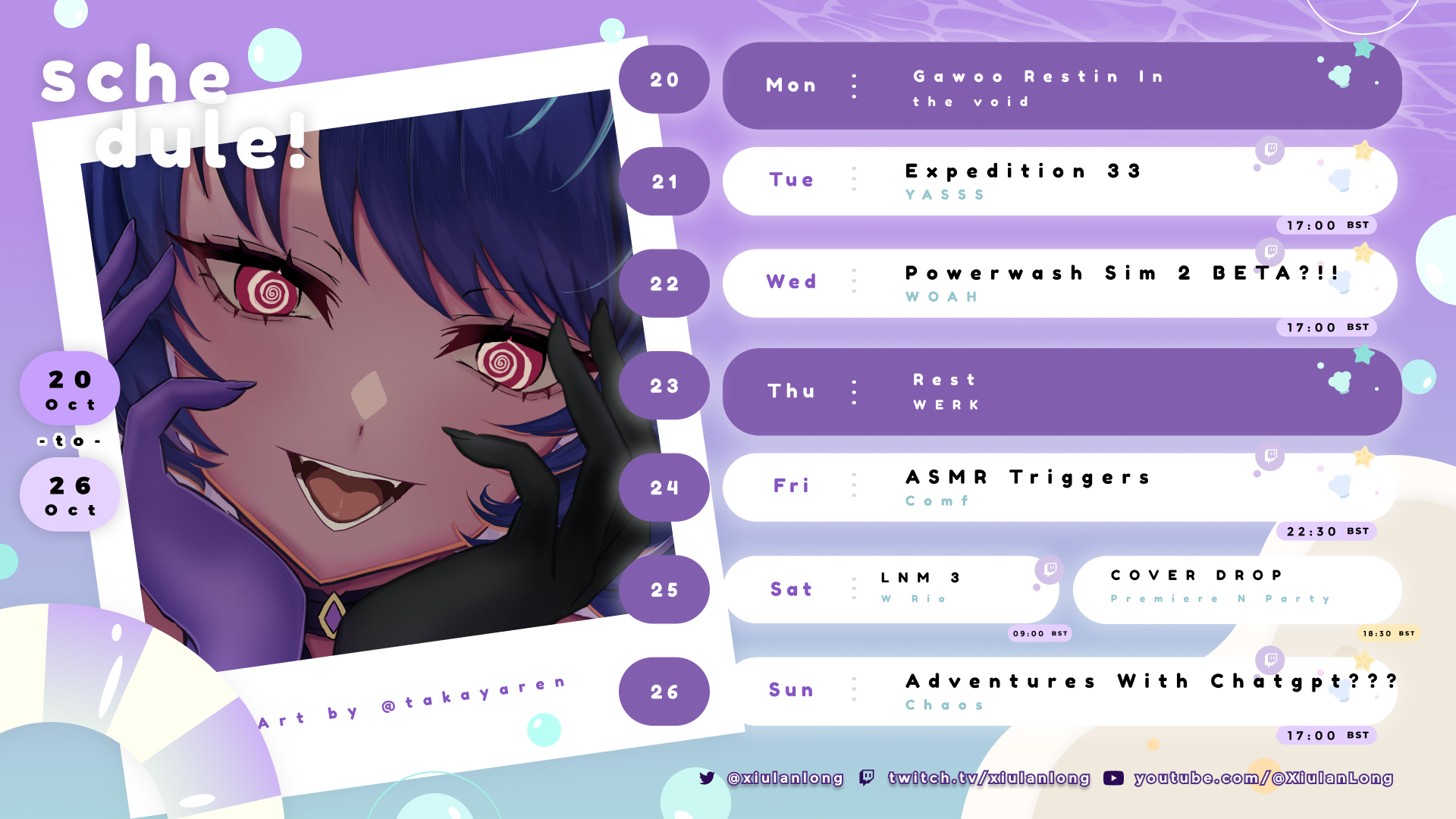 https://x.com/ZuriFuyuki/status/1979882780902424899Zuri schedule