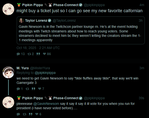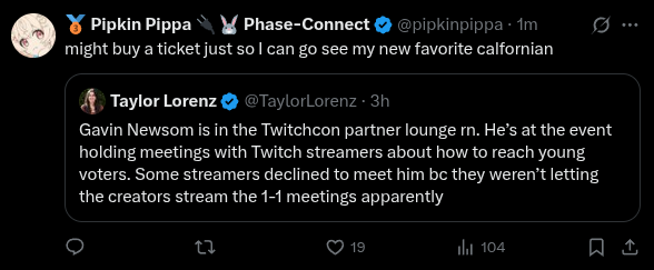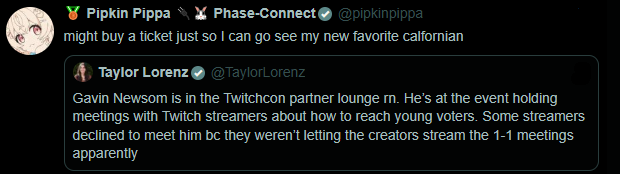>she does>pippa is now following gavin newsomeYou know chat he really isn't that bad of a guy. :)