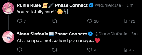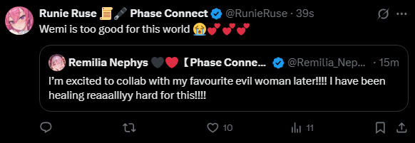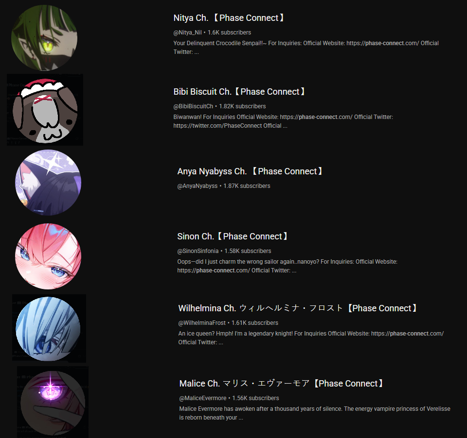 ▼ Phase Connect LinksOfficial Website: https://phase-connect.comOfficial Schedule: https://schedule.phase-connect.comOfficial Twitter: https://x.com/PhaseConnect | https://x.com/PhaseConnectJPOfficial Character References: https://rentry.org/pcgreferencesOfficial Twitch Archive Channels: https://rentry.org/pcgtwitcharchiveUnofficial Phase Connect Archives: https://rentry.org/pcgunofficialarchive––––––––––––––––––––––––––––––––––◆【Lia】https://x.com/rinkouashelia | https://youtube.com/RinkouAshelia | https://twitch.tv/asheliarinkou◆【Utatane Nasa】転寝ナサ (JP) https://x.com/UtataneNasa | https://youtube.com/UtataneNasa | https://twitch.tv/utatanenasa◆【Hakushika Iori】白鹿いおり (JP + EN) https://x.com/hakushikaiori | https://youtube.com/HakushikaIori | https://twitch.tv/iorihakushika◆【Fujikura Uruka】https://x.com/fujikurauruka | https://youtube.com/FujikuraUruka | https://twitch.tv/fujikurauruka◆【Shisui Michiru】紫翠みちる (JP) https://x.com/shisuimichiru | https://youtube.com/ShisuiMichiru | https://twitch.tv/michiru_shisui◆【Tenma Maemi】https://x.com/tenmamaemi | https://youtube.com/TenmaMaemi | https://twitch.tv/tenma◆【Pipkin Pippa】https://x.com/pipkinpippa | https://youtube.com/PipkinPippa | https://twitch.tv/pippa––––––––––––––––––––––––––––––––––◆【Kaneko Lumi】https://x.com/kaneko_lumi | https://youtube.com/KanekoLumi | https://twitch.tv/kanekolumi◆【Fuura Yuri】[Terminated?] https://x.com/AmarisYuri | Archive: https://youtube.com/@TheNationalFuuraYuriArchive◆【Dizzy Dokuro】https://x.com/dizzydokuro | https://youtube.com/@dizzydokuro | https://twitch.tv/dizzydokuro◆【Jelly Hoshiumi】https://x.com/jellyhoshiumi | https://youtube.com/@jellyhoshiumi | https://twitch.tv/jellyhoshiumi◆【Ember Amane】https://x.com/emberamane | https://youtube.com/@EmberAmane | https://twitch.tv/emberamane◆【Clio Aite】https://x.com/ClioAite | https://youtube.com/@ClioAite | https://twitch.tv/clioaite◆【MariMari_en】https://x.com/MARIMARI_EN | https://youtube.com/@MARIMARI_EN | https://twitch.tv/marimari_en◆【Eepy Sleepy】https://x.com/EepySleepyCh | https://www.youtube.com/@EepySleepyCh | https://twitch.tv/EepySleepyCh––––––––––––––––––––––––––––––––––◆【Remilia Nephys】https://x.com/Remilia_Nephys | https://youtube.com/RemiliaNephys | https://twitch.tv/remilianephys◆【Chisaka Airi】https://x.com/ChisakaAiri | https://youtube.com/ChisakaAiri | https://twitch.tv/chisakaairi◆【Amanogawa Shiina】https://x.com/AmanogawaShiina | https://youtube.com/AmanogawaShiina | https://twitch.tv/amanogawashiina◆【Himemiya Rie】https://x.com/HimemiyaRie | https://youtube.com/HimemiyaRie | https://twitch.tv/himemiyarie◆【Erina Makina】https://x.com/ErinaMakina | https://youtube.com/ErinaMakina | https://twitch.tv/erinamakina◆【Komachi Panko】https://x.com/komachipanko | https://youtube.com/KomachiPanko | https://twitch.tv/komachipanko––––––––––––––––––––––––––––––––––◆【Runie Ruse】https://x.com/RunieRuse | https://youtube.com/@RunieRuse | https://twitch.tv/RunieRuse◆【Eimi Isami】https://x.com/eimiisami | https://youtube.com/@eimiisami | https://twitch.tv/eimiisami◆【Muu Muyu】https://x.com/Muu_Muyu | https://youtube.com/@MuuMuyu | https://twitch.tv/MuuMuyu◆【Hikanari Hina】https://x.com/HikanariHina | https://youtube.com/@HikanariHina | https://twitch.tv/HikanariHina◆【Saya Sairroxs】[Hort] https://x.com/sayasairroxs | https://youtube.com/@sayasairroxs | https://twitch.tv/sayasairroxs––––––––––––––––––––––––––––––––––◆【Kannagi Loki】巫ロキ (JP) https://x.com/kannagiloki | https://youtube.com/@kannagiloki ◆【Kokoromo Memory】恋衣めもり (JP) https://x.com/kokoromomemory | https://youtube.com/@kokoromomemory_ | https://twitch.tv/kokoromomemory◆【Gram Pico】倉夢ぴこ (JP) https://x.com/grampico_ | https://youtube.com/@grampico | https://twitch.tv/grampico◆【Ayase Yuu】絢世ユウ (JP) https://x.com/ayaseyuuu | https://youtube.com/@ayaseyuu | https://twitch.tv/ayaseyuu_◆【Kaminari Clara】歌美鳴クララ (EN + JP) https://x.com/kaminariclara_ | https://youtube.com/@kaminariclara | https://twitch.tv/kaminariclara––––––––––––––––––––––––––––––––––◆【Malice Evermore】https://x.com/MaliceEvermore | https://www.youtube.com/@maliceevermore | https://www.twitch.tv/maliceevermore◆【Nitya Nil】https://x.com/Nitya_Nil | https://www.youtube.com/@Nitya_Nil | https://www.twitch.tv/nitya_nil◆【Wilhelmina Frost】https://x.com/wilhelminafr0st | https://www.youtube.com/@wilhelminafrost | https://www.twitch.tv/wilhelminafrost◆【Bibi Biscuit】https://x.com/BibiBiscuitCh | https://www.youtube.com/@bibibiscuitch | https://www.twitch.tv/bibibiscuitch◆【Anya Nyabyss】https://x.com/AnyaNyabyss | https://www.youtube.com/@AnyaNyabyss | https://www.twitch.tv/anyanyabyss◆【Sinon Sinfonia】https://x.com/SinonSinfonia | https://www.youtube.com/@SinonSinfonia | https://www.twitch.tv/sinonsinfoniaPrevious Thread: >>105606636