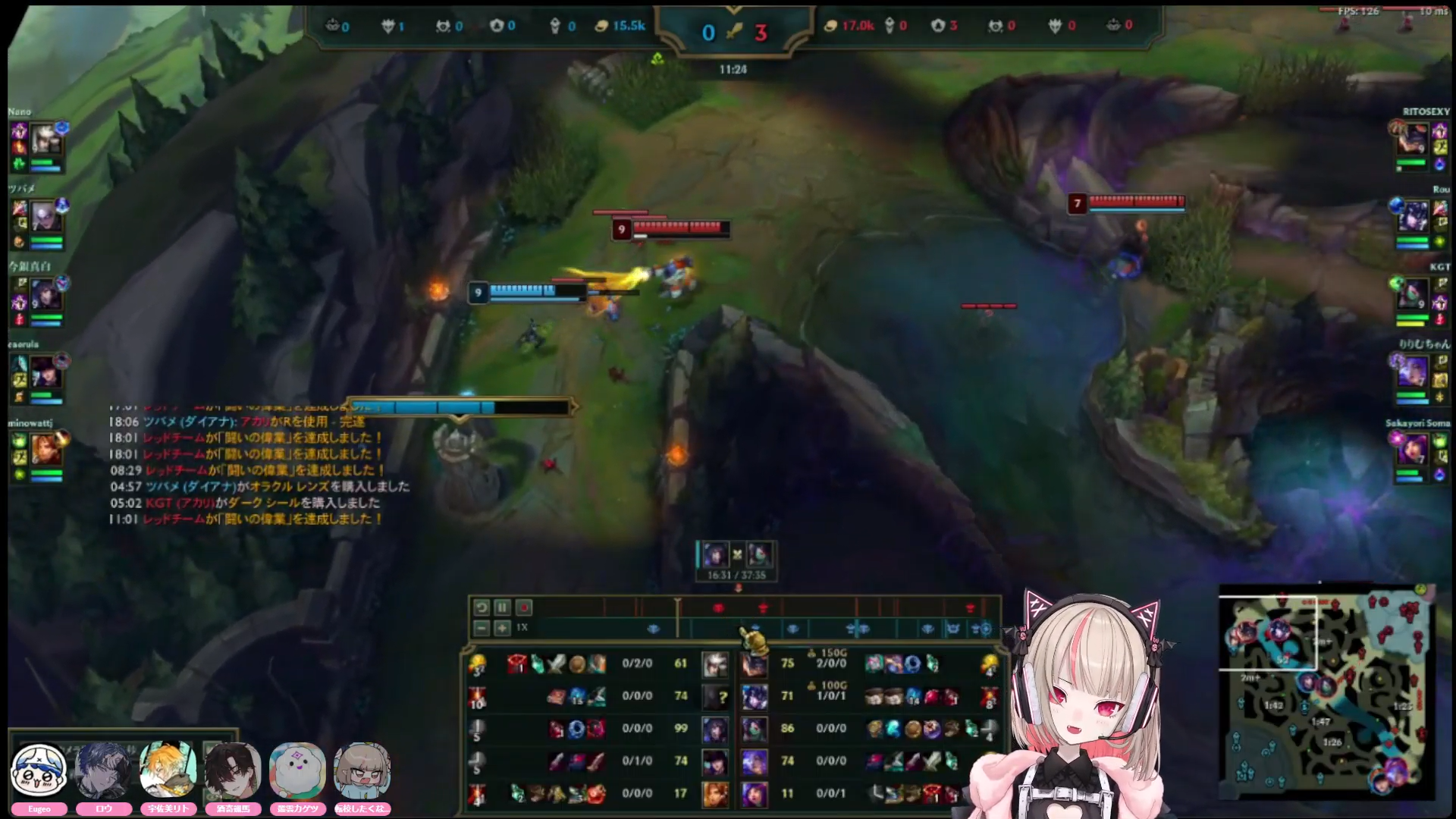 ririmu adc genuinely improving but she to work on kite and avoid hime moements like accidental flash or dashing onto the enemy team and also position so she doesnt get locked by CC