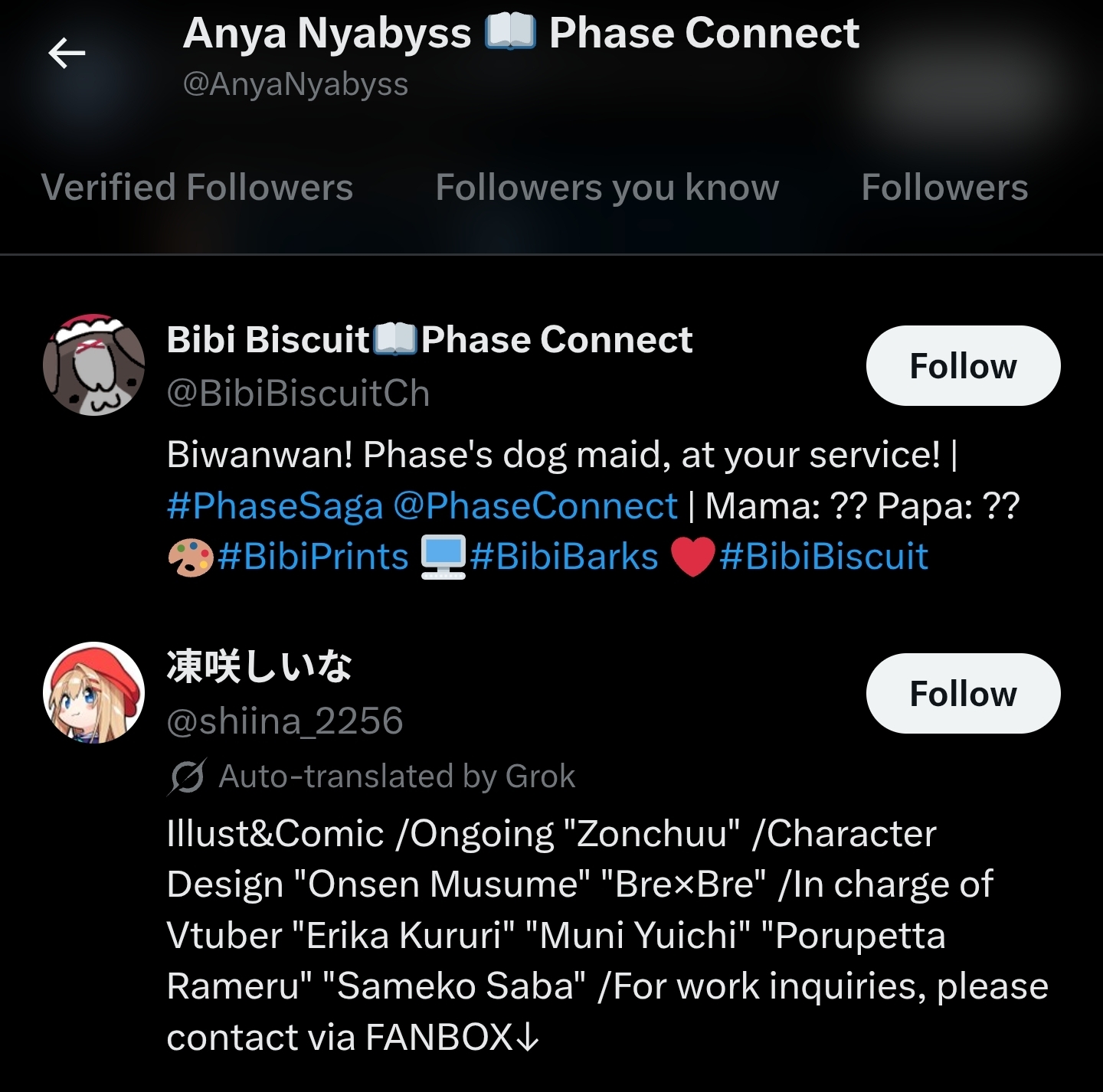 ▼ Phase Connect LinksOfficial Website: https://phase-connect.comOfficial Schedule: https://schedule.phase-connect.comOfficial Twitter: https://x.com/PhaseConnect | https://x.com/PhaseConnectJPOfficial Character References: https://rentry.org/pcgreferencesOfficial Twitch Archive Channels: https://rentry.org/pcgtwitcharchiveUnofficial Phase Connect Archives: https://rentry.org/pcgunofficialarchive––––––––––––––––––––––––––––––––––◆【Lia】https://x.com/rinkouashelia | https://youtube.com/RinkouAshelia | https://twitch.tv/asheliarinkou◆【Utatane Nasa】転寝ナサ (JP) https://x.com/UtataneNasa | https://youtube.com/UtataneNasa | https://twitch.tv/utatanenasa◆【Hakushika Iori】白鹿いおり (JP + EN) https://x.com/hakushikaiori | https://youtube.com/HakushikaIori | https://twitch.tv/iorihakushika◆【Fujikura Uruka】https://x.com/fujikurauruka | https://youtube.com/FujikuraUruka | https://twitch.tv/fujikurauruka◆【Shisui Michiru】紫翠みちる (JP) https://x.com/shisuimichiru | https://youtube.com/ShisuiMichiru | https://twitch.tv/michiru_shisui◆【Tenma Maemi】https://x.com/tenmamaemi | https://youtube.com/TenmaMaemi | https://twitch.tv/tenma◆【Pipkin Pippa】https://x.com/pipkinpippa | https://youtube.com/PipkinPippa | https://twitch.tv/pippa––––––––––––––––––––––––––––––––––◆【Kaneko Lumi】https://x.com/kaneko_lumi | https://youtube.com/KanekoLumi | https://twitch.tv/kanekolumi◆【Fuura Yuri】[Terminated?] https://x.com/AmarisYuri | Archive: https://youtube.com/@TheNationalFuuraYuriArchive◆【Dizzy Dokuro】https://x.com/dizzydokuro | https://youtube.com/@dizzydokuro | https://twitch.tv/dizzydokuro◆【Jelly Hoshiumi】https://x.com/jellyhoshiumi | https://youtube.com/@jellyhoshiumi | https://twitch.tv/jellyhoshiumi◆【Ember Amane】https://x.com/emberamane | https://youtube.com/@EmberAmane | https://twitch.tv/emberamane◆【Clio Aite】https://x.com/ClioAite | https://youtube.com/@ClioAite | https://twitch.tv/clioaite◆【MariMari_en】https://x.com/MARIMARI_EN | https://youtube.com/@MARIMARI_EN | https://twitch.tv/marimari_en◆【Eepy Sleepy】https://x.com/EepySleepyCh | https://www.youtube.com/@EepySleepyCh | https://twitch.tv/EepySleepyCh––––––––––––––––––––––––––––––––––◆【Remilia Nephys】https://x.com/Remilia_Nephys | https://youtube.com/RemiliaNephys | https://twitch.tv/remilianephys◆【Chisaka Airi】https://x.com/ChisakaAiri | https://youtube.com/ChisakaAiri | https://twitch.tv/chisakaairi◆【Amanogawa Shiina】https://x.com/AmanogawaShiina | https://youtube.com/AmanogawaShiina | https://twitch.tv/amanogawashiina◆【Himemiya Rie】https://x.com/HimemiyaRie | https://youtube.com/HimemiyaRie | https://twitch.tv/himemiyarie◆【Erina Makina】https://x.com/ErinaMakina | https://youtube.com/ErinaMakina | https://twitch.tv/erinamakina◆【Komachi Panko】https://x.com/komachipanko | https://youtube.com/KomachiPanko | https://twitch.tv/komachipanko––––––––––––––––––––––––––––––––––◆【Runie Ruse】https://x.com/RunieRuse | https://youtube.com/@RunieRuse | https://twitch.tv/RunieRuse◆【Eimi Isami】https://x.com/eimiisami | https://youtube.com/@eimiisami | https://twitch.tv/eimiisami◆【Muu Muyu】https://x.com/Muu_Muyu | https://youtube.com/@MuuMuyu | https://twitch.tv/MuuMuyu◆【Hikanari Hina】https://x.com/HikanariHina | https://youtube.com/@HikanariHina | https://twitch.tv/HikanariHina◆【Saya Sairroxs】[Hort] https://x.com/sayasairroxs | https://youtube.com/@sayasairroxs | https://twitch.tv/sayasairroxs––––––––––––––––––––––––––––––––––◆【Kannagi Loki】巫ロキ (JP) https://x.com/kannagiloki | https://youtube.com/@kannagiloki ◆【Kokoromo Memory】恋衣めもり (JP) https://x.com/kokoromomemory | https://youtube.com/@kokoromomemory_ | https://twitch.tv/kokoromomemory◆【Gram Pico】倉夢ぴこ (JP) https://x.com/grampico_ | https://youtube.com/@grampico | https://twitch.tv/grampico◆【Ayase Yuu】絢世ユウ (JP) https://x.com/ayaseyuuu | https://youtube.com/@ayaseyuu | https://twitch.tv/ayaseyuu_◆【Kaminari Clara】歌美鳴クララ (EN + JP) https://x.com/kaminariclara_ | https://youtube.com/@kaminariclara | https://twitch.tv/kaminariclara––––––––––––––––––––––––––––––––––◆【Malice Evermore】https://x.com/MaliceEvermore | https://www.youtube.com/@maliceevermore | https://www.twitch.tv/maliceevermore◆【Nitya Nil】https://x.com/Nitya_Nil | https://www.youtube.com/@Nitya_Nil | https://www.twitch.tv/nitya_nil◆【Wilhelmina Frost】https://x.com/wilhelminafr0st | https://www.youtube.com/@wilhelminafrost | https://www.twitch.tv/wilhelminafrost◆【Bibi Biscuit】https://x.com/BibiBiscuitCh | https://www.youtube.com/@bibibiscuitch | https://www.twitch.tv/bibibiscuitch◆【Anya Nyabyss】https://x.com/AnyaNyabyss | https://www.youtube.com/@AnyaNyabyss | https://www.twitch.tv/anyanyabyss◆【Sinon Sinfonia】https://x.com/SinonSinfonia | https://www.youtube.com/@SinonSinfonia | https://www.twitch.tv/sinonsinfoniaPrevious Thread: >>105627566