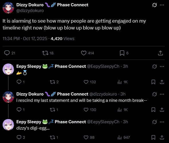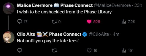 ▼ Phase Connect LinksOfficial Website: https://phase-connect.comOfficial Schedule: https://schedule.phase-connect.comOfficial Twitter: https://x.com/PhaseConnect | https://x.com/PhaseConnectJPOfficial Character References: https://rentry.org/pcgreferencesOfficial Twitch Archive Channels: https://rentry.org/pcgtwitcharchiveUnofficial Phase Connect Archives: https://rentry.org/pcgunofficialarchive––––––––––––––––––––––––––––––––––◆【Lia】https://x.com/rinkouashelia | https://youtube.com/RinkouAshelia | https://twitch.tv/asheliarinkou◆【Utatane Nasa】転寝ナサ (JP) https://x.com/UtataneNasa | https://youtube.com/UtataneNasa | https://twitch.tv/utatanenasa◆【Hakushika Iori】白鹿いおり (JP + EN) https://x.com/hakushikaiori | https://youtube.com/HakushikaIori | https://twitch.tv/iorihakushika◆【Fujikura Uruka】https://x.com/fujikurauruka | https://youtube.com/FujikuraUruka | https://twitch.tv/fujikurauruka◆【Shisui Michiru】紫翠みちる (JP) https://x.com/shisuimichiru | https://youtube.com/ShisuiMichiru | https://twitch.tv/michiru_shisui◆【Tenma Maemi】https://x.com/tenmamaemi | https://youtube.com/TenmaMaemi | https://twitch.tv/tenma◆【Pipkin Pippa】https://x.com/pipkinpippa | https://youtube.com/PipkinPippa | https://twitch.tv/pippa––––––––––––––––––––––––––––––––––◆【Kaneko Lumi】https://x.com/kaneko_lumi | https://youtube.com/KanekoLumi | https://twitch.tv/kanekolumi◆【Fuura Yuri】[Terminated?] https://x.com/AmarisYuri | Archive: https://youtube.com/@TheNationalFuuraYuriArchive◆【Dizzy Dokuro】https://x.com/dizzydokuro | https://youtube.com/@dizzydokuro | https://twitch.tv/dizzydokuro◆【Jelly Hoshiumi】https://x.com/jellyhoshiumi | https://youtube.com/@jellyhoshiumi | https://twitch.tv/jellyhoshiumi◆【Ember Amane】https://x.com/emberamane | https://youtube.com/@EmberAmane | https://twitch.tv/emberamane◆【Clio Aite】https://x.com/ClioAite | https://youtube.com/@ClioAite | https://twitch.tv/clioaite◆【MariMari_en】https://x.com/MARIMARI_EN | https://youtube.com/@MARIMARI_EN | https://twitch.tv/marimari_en◆【Eepy Sleepy】https://x.com/EepySleepyCh | https://www.youtube.com/@EepySleepyCh | https://twitch.tv/EepySleepyCh––––––––––––––––––––––––––––––––––◆【Remilia Nephys】https://x.com/Remilia_Nephys | https://youtube.com/RemiliaNephys | https://twitch.tv/remilianephys◆【Chisaka Airi】https://x.com/ChisakaAiri | https://youtube.com/ChisakaAiri | https://twitch.tv/chisakaairi◆【Amanogawa Shiina】https://x.com/AmanogawaShiina | https://youtube.com/AmanogawaShiina | https://twitch.tv/amanogawashiina◆【Himemiya Rie】https://x.com/HimemiyaRie | https://youtube.com/HimemiyaRie | https://twitch.tv/himemiyarie◆【Erina Makina】https://x.com/ErinaMakina | https://youtube.com/ErinaMakina | https://twitch.tv/erinamakina◆【Komachi Panko】https://x.com/komachipanko | https://youtube.com/KomachiPanko | https://twitch.tv/komachipanko––––––––––––––––––––––––––––––––––◆【Runie Ruse】https://x.com/RunieRuse | https://youtube.com/@RunieRuse | https://twitch.tv/RunieRuse◆【Eimi Isami】https://x.com/eimiisami | https://youtube.com/@eimiisami | https://twitch.tv/eimiisami◆【Muu Muyu】https://x.com/Muu_Muyu | https://youtube.com/@MuuMuyu | https://twitch.tv/MuuMuyu◆【Hikanari Hina】https://x.com/HikanariHina | https://youtube.com/@HikanariHina | https://twitch.tv/HikanariHina◆【Saya Sairroxs】[Hort] https://x.com/sayasairroxs | https://youtube.com/@sayasairroxs | https://twitch.tv/sayasairroxs––––––––––––––––––––––––––––––––––◆【Kannagi Loki】巫ロキ (JP) https://x.com/kannagiloki | https://youtube.com/@kannagiloki ◆【Kokoromo Memory】恋衣めもり (JP) https://x.com/kokoromomemory | https://youtube.com/@kokoromomemory_ | https://twitch.tv/kokoromomemory◆【Gram Pico】倉夢ぴこ (JP) https://x.com/grampico_ | https://youtube.com/@grampico | https://twitch.tv/grampico◆【Ayase Yuu】絢世ユウ (JP) https://x.com/ayaseyuuu | https://youtube.com/@ayaseyuu | https://twitch.tv/ayaseyuu_◆【Kaminari Clara】歌美鳴クララ (EN + JP) https://x.com/kaminariclara_ | https://youtube.com/@kaminariclara | https://twitch.tv/kaminariclara––––––––––––––––––––––––––––––––––◆【Malice Evermore】https://x.com/MaliceEvermore | https://www.youtube.com/@maliceevermore | https://www.twitch.tv/maliceevermore◆【Nitya Nil】https://x.com/Nitya_Nil | https://www.youtube.com/@Nitya_Nil | https://www.twitch.tv/nitya_nil◆【Wilhelmina Frost】https://x.com/wilhelminafr0st | https://www.youtube.com/@wilhelminafrost | https://www.twitch.tv/wilhelminafrost◆【Bibi Biscuit】https://x.com/BibiBiscuitCh | https://www.youtube.com/@bibibiscuitch | https://www.twitch.tv/bibibiscuitch◆【Anya Nyabyss】https://x.com/AnyaNyabyss | https://www.youtube.com/@AnyaNyabyss | https://www.twitch.tv/anyanyabyss◆【Sinon Sinfonia】https://x.com/SinonSinfonia | https://www.youtube.com/@SinonSinfonia | https://www.twitch.tv/sinonsinfoniaPrevious Thread: >>105665811
