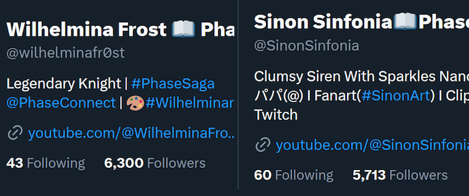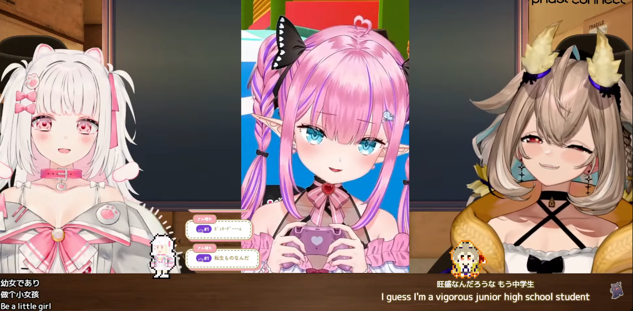▼ Phase Connect LinksOfficial Website: https://phase-connect.comOfficial Schedule: https://schedule.phase-connect.comOfficial Twitter: https://x.com/PhaseConnect | https://x.com/PhaseConnectJPOfficial Character References: https://rentry.org/pcgreferencesOfficial Twitch Archive Channels: https://rentry.org/pcgtwitcharchiveUnofficial Phase Connect Archives: https://rentry.org/pcgunofficialarchive––––––––––––––––––––––––––––––––––◆【Lia】https://x.com/rinkouashelia | https://youtube.com/RinkouAshelia | https://twitch.tv/asheliarinkou◆【Utatane Nasa】転寝ナサ (JP) https://x.com/UtataneNasa | https://youtube.com/UtataneNasa | https://twitch.tv/utatanenasa◆【Hakushika Iori】白鹿いおり (JP + EN) https://x.com/hakushikaiori | https://youtube.com/HakushikaIori | https://twitch.tv/iorihakushika◆【Fujikura Uruka】https://x.com/fujikurauruka | https://youtube.com/FujikuraUruka | https://twitch.tv/fujikurauruka◆【Shisui Michiru】紫翠みちる (JP) https://x.com/shisuimichiru | https://youtube.com/ShisuiMichiru | https://twitch.tv/michiru_shisui◆【Tenma Maemi】https://x.com/tenmamaemi | https://youtube.com/TenmaMaemi | https://twitch.tv/tenma◆【Pipkin Pippa】https://x.com/pipkinpippa | https://youtube.com/PipkinPippa | https://twitch.tv/pippa––––––––––––––––––––––––––––––––––◆【Kaneko Lumi】https://x.com/kaneko_lumi | https://youtube.com/KanekoLumi | https://twitch.tv/kanekolumi◆【Fuura Yuri】[Terminated?] https://x.com/AmarisYuri | Archive: https://youtube.com/@TheNationalFuuraYuriArchive◆【Dizzy Dokuro】https://x.com/dizzydokuro | https://youtube.com/@dizzydokuro | https://twitch.tv/dizzydokuro◆【Jelly Hoshiumi】https://x.com/jellyhoshiumi | https://youtube.com/@jellyhoshiumi | https://twitch.tv/jellyhoshiumi◆【Ember Amane】https://x.com/emberamane | https://youtube.com/@EmberAmane | https://twitch.tv/emberamane◆【Clio Aite】https://x.com/ClioAite | https://youtube.com/@ClioAite | https://twitch.tv/clioaite◆【MariMari_en】https://x.com/MARIMARI_EN | https://youtube.com/@MARIMARI_EN | https://twitch.tv/marimari_en◆【Eepy Sleepy】https://x.com/EepySleepyCh | https://www.youtube.com/@EepySleepyCh | https://twitch.tv/EepySleepyCh––––––––––––––––––––––––––––––––––◆【Remilia Nephys】https://x.com/Remilia_Nephys | https://youtube.com/RemiliaNephys | https://twitch.tv/remilianephys◆【Chisaka Airi】https://x.com/ChisakaAiri | https://youtube.com/ChisakaAiri | https://twitch.tv/chisakaairi◆【Amanogawa Shiina】https://x.com/AmanogawaShiina | https://youtube.com/AmanogawaShiina | https://twitch.tv/amanogawashiina◆【Himemiya Rie】https://x.com/HimemiyaRie | https://youtube.com/HimemiyaRie | https://twitch.tv/himemiyarie◆【Erina Makina】https://x.com/ErinaMakina | https://youtube.com/ErinaMakina | https://twitch.tv/erinamakina◆【Komachi Panko】https://x.com/komachipanko | https://youtube.com/KomachiPanko | https://twitch.tv/komachipanko––––––––––––––––––––––––––––––––––◆【Runie Ruse】https://x.com/RunieRuse | https://youtube.com/@RunieRuse | https://twitch.tv/RunieRuse◆【Eimi Isami】https://x.com/eimiisami | https://youtube.com/@eimiisami | https://twitch.tv/eimiisami◆【Muu Muyu】https://x.com/Muu_Muyu | https://youtube.com/@MuuMuyu | https://twitch.tv/MuuMuyu◆【Hikanari Hina】https://x.com/HikanariHina | https://youtube.com/@HikanariHina | https://twitch.tv/HikanariHina◆【Saya Sairroxs】[Hort] https://x.com/sayasairroxs | https://youtube.com/@sayasairroxs | https://twitch.tv/sayasairroxs––––––––––––––––––––––––––––––––––◆【Kannagi Loki】巫ロキ (JP) https://x.com/kannagiloki | https://youtube.com/@kannagiloki ◆【Kokoromo Memory】恋衣めもり (JP) https://x.com/kokoromomemory | https://youtube.com/@kokoromomemory_ | https://twitch.tv/kokoromomemory◆【Gram Pico】倉夢ぴこ (JP) https://x.com/grampico_ | https://youtube.com/@grampico | https://twitch.tv/grampico◆【Ayase Yuu】絢世ユウ (JP) https://x.com/ayaseyuuu | https://youtube.com/@ayaseyuu | https://twitch.tv/ayaseyuu_◆【Kaminari Clara】歌美鳴クララ (EN + JP) https://x.com/kaminariclara_ | https://youtube.com/@kaminariclara | https://twitch.tv/kaminariclara––––––––––––––––––––––––––––––––––◆【Malice Evermore】https://x.com/MaliceEvermore | https://www.youtube.com/@maliceevermore | https://www.twitch.tv/maliceevermore◆【Nitya Nil】https://x.com/Nitya_Nil | https://www.youtube.com/@Nitya_Nil | https://www.twitch.tv/nitya_nil◆【Wilhelmina Frost】https://x.com/wilhelminafr0st | https://www.youtube.com/@wilhelminafrost | https://www.twitch.tv/wilhelminafrost◆【Bibi Biscuit】https://x.com/BibiBiscuitCh | https://www.youtube.com/@bibibiscuitch | https://www.twitch.tv/bibibiscuitch◆【Anya Nyabyss】https://x.com/AnyaNyabyss | https://www.youtube.com/@AnyaNyabyss | https://www.twitch.tv/anyanyabyss◆【Sinon Sinfonia】https://x.com/SinonSinfonia | https://www.youtube.com/@SinonSinfonia | https://www.twitch.tv/sinonsinfoniaPrevious Thread: >>105687894