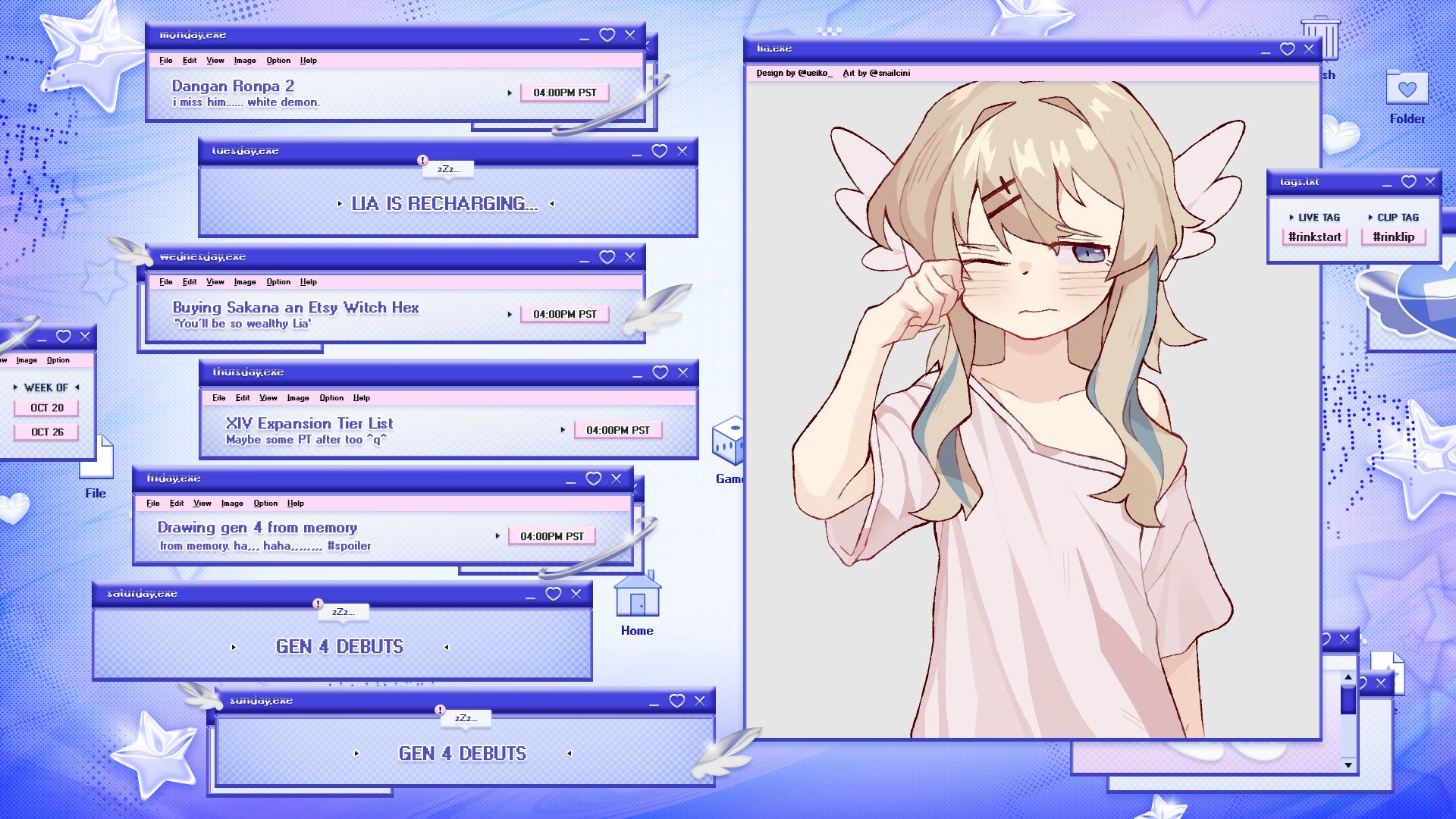 I lost 200 ml of blood out of my butt cheeks today and I can hardly focus, what's the theme of Dizzy's stream?make up what?