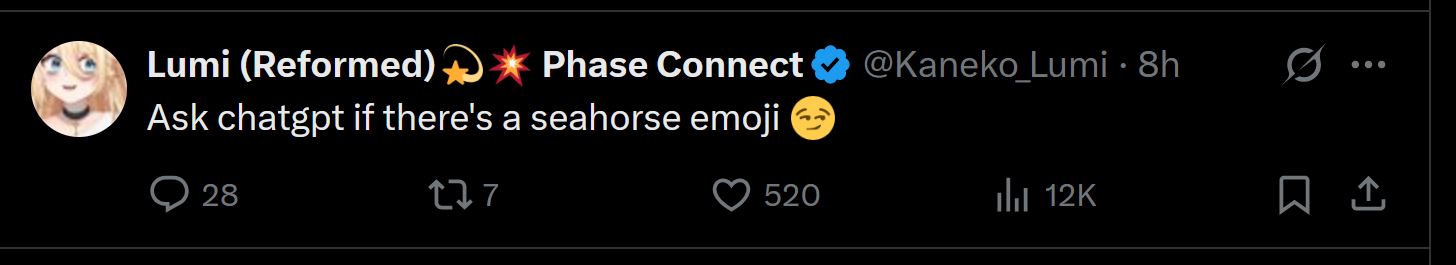 >>105695502no one knows. But now I have the slightest slim hope that she's Phasing Back In.I know it's a long shot, let me hope...