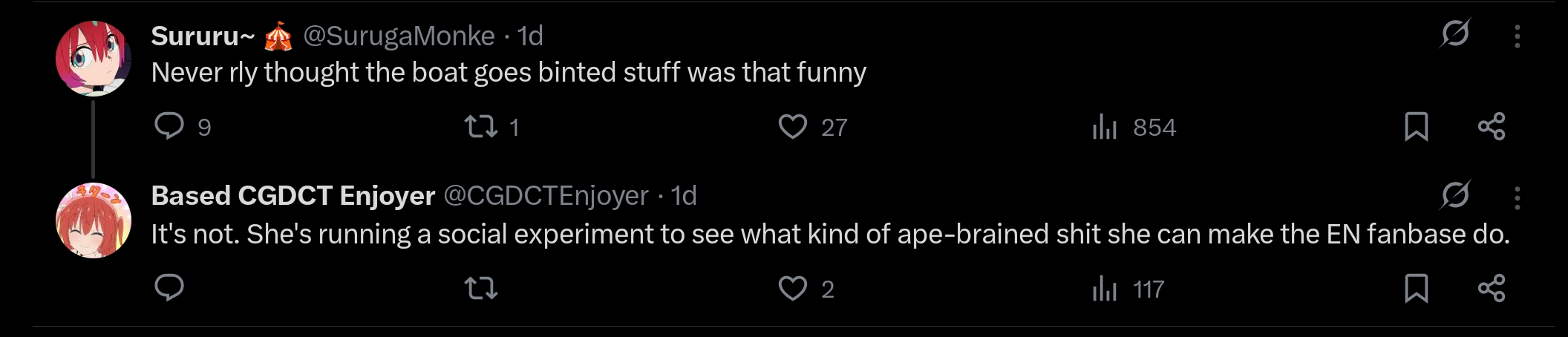 >>105704973Anytime 2 vtubers are not literally on the screen at the same time they hate each others. That's science.