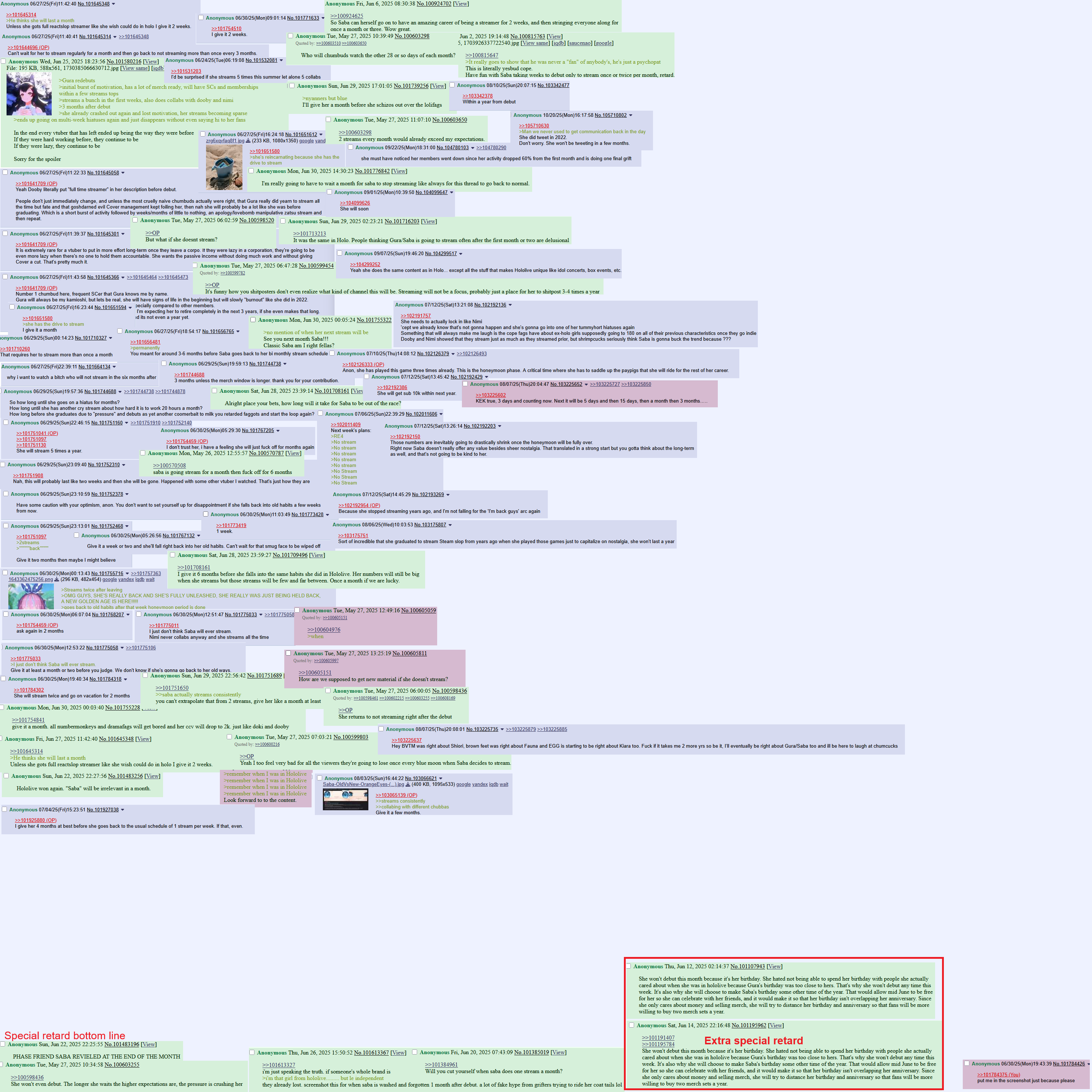 >>105710424Whats funny is that this is saba's first year, its easy to forget she only debuted a few months ago, she will never be more active than she is now and shes alreadys flakey
