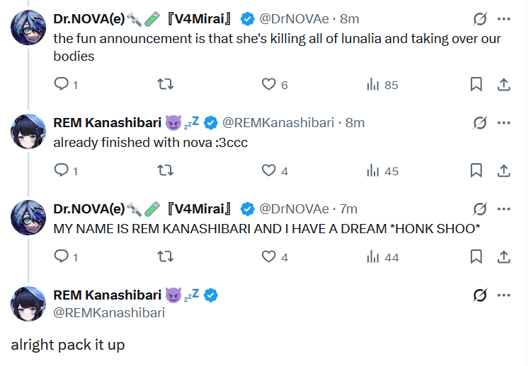 Shoot Me Again You Won't EditionThis thread is made to discuss the streams of Brave US branch, V4Mirai. globie and VSPO! EN are welcome too! ChromaSHIFT has its own thread! Main Rentry page:https://rentry.org/brave_chThe talents of V4Mirai: >Gen 1: Crystalis 【Graduated】Abi Kadabura: https://www.youtube.com/@AbiKadaburaSerina Maiko: https://www.youtube.com/@SerinaMaiko >Gen 2: Petalight 【Graduated】Kou Mariya: https://www.youtube.com/@Kou_Mariya Mono Monet: https://www.youtube.com/@MonoMonet Yae Yugiri: https://www.youtube.com/@YaeYugiri 【Graduated】Biscotti: https://www.youtube.com/@V4Biscotti >Gen 3: Lunalia Alias Anono: https://www.youtube.com/@AliasAnono Dr. NOVA(e): https://www.youtube.com/@DrNovae REM Kanashibari: https://www.youtube.com/@REMKanashibari Yumi the Witch: https://www.youtube.com/@YumitheWitch >Gen 4: VoltailLyko Lianna: https://www.youtube.com/@LykoLianna Poma Pon: https://www.youtube.com/@poma_pon Rara Rocora: https://www.youtube.com/@RaraRocora Terra 404: https://www.youtube.com/@v4terra404 Sensei's Twitter: https://twitter.com/VeeSensei V4Mirai Twitter: https://twitter.com/V4Miraihonse <3 Other Brave EN groups:globie:>Gen 1 Kumanui Miel: https://www.youtube.com/@KumanuiMiel 【Graduated】Reina Ronronea: https://www.youtube.com/@ReinaRonronea 【Graduated】Taring Hu: https://www.youtube.com/@TaringHu 【Graduated】Pippa Pebblesworth: https://www.youtube.com/@PippaPebblesworth >Gen 2 Bonnie Barkswell: https://www.youtube.com/@BonnieBarkswell 【Graduated】Kiri Kilovolt: https://www.youtube.com/@KiriKilovolt 【Graduated】Rhubarb N. Kustard: https://www.youtube.com/@RhubarbNKustard Alicja Da Lontano: https://www.youtube.com/@AlicjaDaLontano >Gen 3Maeve Morveren: https://www.youtube.com/@MaeveMorveren 【Graduated】Squirmimi: https://www.youtube.com/@squirmimi Cera Luceria: https://www.youtube.com/@CeraLuceria 【Graduated】O'Lilou Loulou: https://www.youtube.com/@OLilouLoulou VSPO! EN:Remia Aotsuki: https://www.youtube.com/@RemiaAotsuki Arya Kuroha: https://www.youtube.com/@AryaKurohaJira Jisaki: https://www.youtube.com/@JiraJisaki Narin Mikure: https://www.youtube.com/@NarinMikure Riko Solari: https://www.youtube.com/@RikoSolari >Idol Corp / ChromaSHIFT(...?) >>>/vt//jidf/>Adopted Classmates Pillowdear: https://www.youtube.com/@pillowdear Nene Amano: https://youtube.com/@neneamanochbakenene: https://twitch.tv/bakenene>Other Useful Links https://rentry.org/V4M_plushttps://pomu.pages.dev/v4mhttps://pomu.pages.dev/brave>Get your merch! https://shop.bravegroup-us.com/ Previous Thread: >>105678715