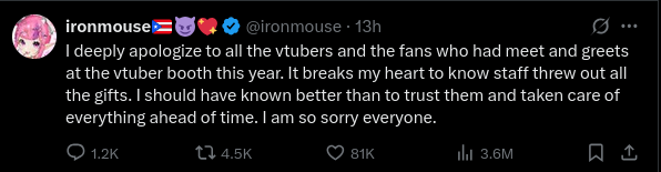 https://x.com/chibidokii/status/1979778005930234065 TWITCHCON HATE