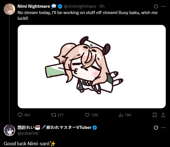 Wow the Red Eye Nimi plushie launched like a week ago and people already getting them delivered? Nimi's merch service is way faster than Holo's for sure.