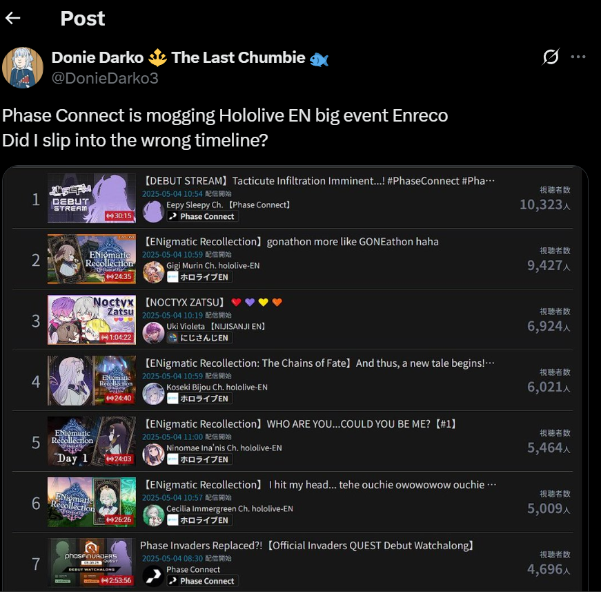 You just made me realize Phase Connect is now unironically the number one NA Vtuber company after Vshojo died