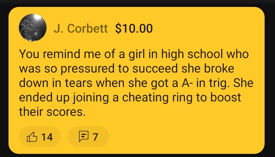 Damn i didn't know Malim has that strict household trauma. I thought B-/C+ was perfectly fine.