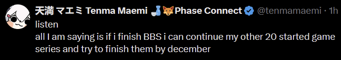 I still wonder why Tenma still works. No amount of cope will convince me that she can't do full-time streaming because of financial reasons because that's just a blatant lie at this point.