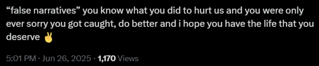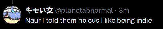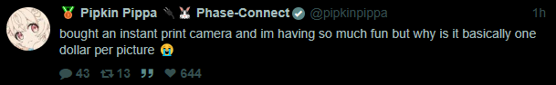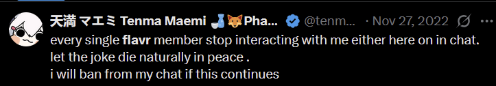>>105787279A few months back Yuri was bitching about how people assume she did something bad to get kicked out of phase only for Hime to post on her alt vaguely about how someone needs to shut the fuck up after what she did to the girls, cue Yuri deleting her tweets and saying she'll shut up and get over it.
