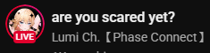 ▼ Phase Connect LinksOfficial Website: https://phase-connect.comOfficial Schedule: https://schedule.phase-connect.comOfficial Twitter: https://x.com/PhaseConnect | https://x.com/PhaseConnectJPOfficial Character References: https://rentry.org/pcgreferencesOfficial Twitch Archive Channels: https://rentry.org/pcgtwitcharchiveUnofficial Phase Connect Archives: https://rentry.org/pcgunofficialarchive––––––––––––––––––––––––––––––––––◆【Lia】https://x.com/rinkouashelia | https://youtube.com/RinkouAshelia | https://twitch.tv/asheliarinkou◆【Utatane Nasa】転寝ナサ (JP) https://x.com/UtataneNasa | https://youtube.com/UtataneNasa | https://twitch.tv/utatanenasa◆【Hakushika Iori】白鹿いおり (JP + EN) https://x.com/hakushikaiori | https://youtube.com/HakushikaIori | https://twitch.tv/iorihakushika◆【Fujikura Uruka】https://x.com/fujikurauruka | https://youtube.com/FujikuraUruka | https://twitch.tv/fujikurauruka◆【Shisui Michiru】紫翠みちる (JP) https://x.com/shisuimichiru | https://youtube.com/ShisuiMichiru | https://twitch.tv/michiru_shisui◆【Tenma Maemi】https://x.com/tenmamaemi | https://youtube.com/TenmaMaemi | https://twitch.tv/tenma◆【Pipkin Pippa】https://x.com/pipkinpippa | https://youtube.com/PipkinPippa | https://twitch.tv/pippa––––––––––––––––––––––––––––––––––◆【Kaneko Lumi】https://x.com/kaneko_lumi | https://youtube.com/KanekoLumi | https://twitch.tv/kanekolumi◆【Fuura Yuri】[Terminated] https://x.com/AmarisYuri | Archive: https://youtube.com/@TheNationalFuuraYuriArchive◆【Dizzy Dokuro】https://x.com/dizzydokuro | https://youtube.com/@dizzydokuro | https://twitch.tv/dizzydokuro◆【Jelly Hoshiumi】https://x.com/jellyhoshiumi | https://youtube.com/@jellyhoshiumi | https://twitch.tv/jellyhoshiumi◆【Ember Amane】https://x.com/emberamane | https://youtube.com/@EmberAmane | https://twitch.tv/emberamane◆【Clio Aite】https://x.com/ClioAite | https://youtube.com/@ClioAite | https://twitch.tv/clioaite◆【MariMari_en】https://x.com/MARIMARI_EN | https://youtube.com/@MARIMARI_EN | https://twitch.tv/marimari_en◆【Eepy Sleepy】https://x.com/EepySleepyCh | https://www.youtube.com/@EepySleepyCh | https://twitch.tv/EepySleepyCh––––––––––––––––––––––––––––––––––◆【Remilia Nephys】https://x.com/Remilia_Nephys | https://youtube.com/RemiliaNephys | https://twitch.tv/remilianephys◆【Chisaka Airi】https://x.com/ChisakaAiri | https://youtube.com/ChisakaAiri | https://twitch.tv/chisakaairi◆【Amanogawa Shiina】https://x.com/AmanogawaShiina | https://youtube.com/AmanogawaShiina | https://twitch.tv/amanogawashiina◆【Himemiya Rie】https://x.com/HimemiyaRie | https://youtube.com/HimemiyaRie | https://twitch.tv/himemiyarie◆【Erina Makina】https://x.com/ErinaMakina | https://youtube.com/ErinaMakina | https://twitch.tv/erinamakina◆【Komachi Panko】https://x.com/komachipanko | https://youtube.com/KomachiPanko | https://twitch.tv/komachipanko––––––––––––––––––––––––––––––––––◆【Runie Ruse】https://x.com/RunieRuse | https://youtube.com/@RunieRuse | https://twitch.tv/RunieRuse◆【Eimi Isami】https://x.com/eimiisami | https://youtube.com/@eimiisami | https://twitch.tv/eimiisami◆【Muu Muyu】https://x.com/Muu_Muyu | https://youtube.com/@MuuMuyu | https://twitch.tv/MuuMuyu◆【Hikanari Hina】https://x.com/HikanariHina | https://youtube.com/@HikanariHina | https://twitch.tv/HikanariHina◆【Saya Sairroxs】[Hort] https://x.com/sayasairroxs | https://youtube.com/@sayasairroxs | https://twitch.tv/sayasairroxs––––––––––––––––––––––––––––––––––◆【Kannagi Loki】巫ロキ (JP) https://x.com/kannagiloki | https://youtube.com/@kannagiloki◆【Kokoromo Memory】恋衣めもり (JP) https://x.com/kokoromomemory | https://youtube.com/@kokoromomemory_ | https://twitch.tv/kokoromomemory◆【Gram Pico】倉夢ぴこ (JP) https://x.com/grampico_ | https://youtube.com/@grampico | https://twitch.tv/grampico◆【Ayase Yuu】絢世ユウ (JP) https://x.com/ayaseyuuu | https://youtube.com/@ayaseyuu | https://twitch.tv/ayaseyuu_◆【Kaminari Clara】歌美鳴クララ (EN + JP) https://x.com/kaminariclara_ | https://youtube.com/@kaminariclara | https://twitch.tv/kaminariclara––––––––––––––––––––––––––––––––––◆【Bibi Biscuit】https://x.com/BibiBiscuitCh | https://www.youtube.com/@bibibiscuitch | https://www.twitch.tv/bibibiscuitch◆【Sinon Sinfonia】https://x.com/SinonSinfonia | https://www.youtube.com/@SinonSinfonia | https://www.twitch.tv/sinonsinfonia◆【Wilhelmina Frost】https://x.com/wilhelminafr0st | https://www.youtube.com/@wilhelminafrost | https://www.twitch.tv/wilhelminafrost◆【Anya Nyabyss】[debut hort] https://x.com/AnyaNyabyss | https://www.youtube.com/@AnyaNyabyss | https://www.twitch.tv/anyanyabyss◆【Malice Evermore】https://x.com/MaliceEvermore | https://www.youtube.com/@maliceevermore | https://www.twitch.tv/maliceevermore◆【Nitya Nil】https://x.com/Nitya_Nil | https://www.youtube.com/@Nitya_Nil | https://www.twitch.tv/nitya_nilPrevious Thread: >>105779926