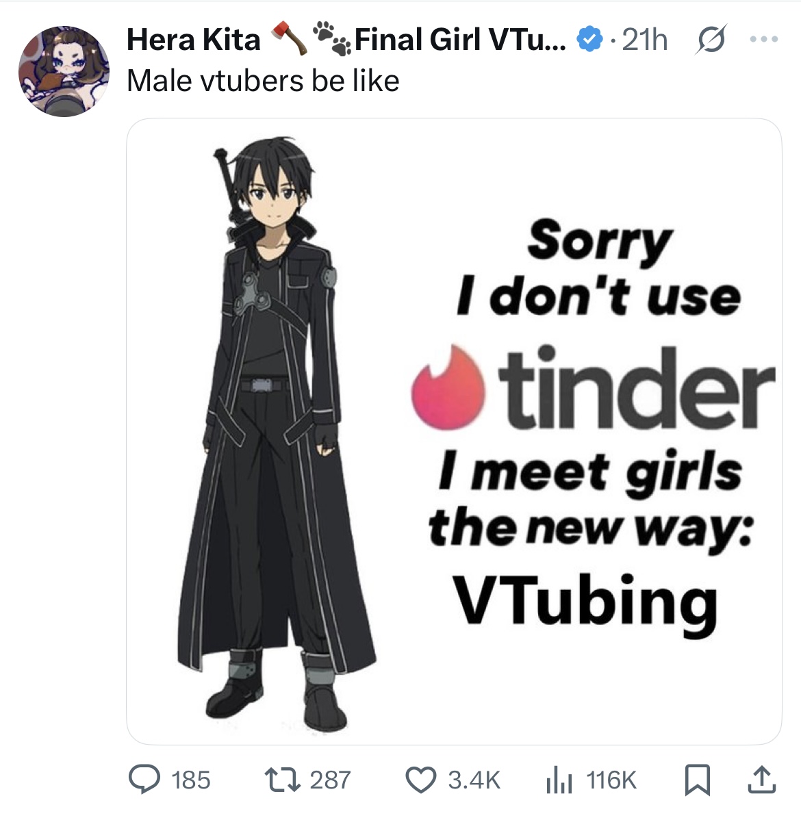 >>105841319>male vtubers are rarerBut they aren't. If you go on twitch right now and look at the vtuber tag, it's pretty 50/50